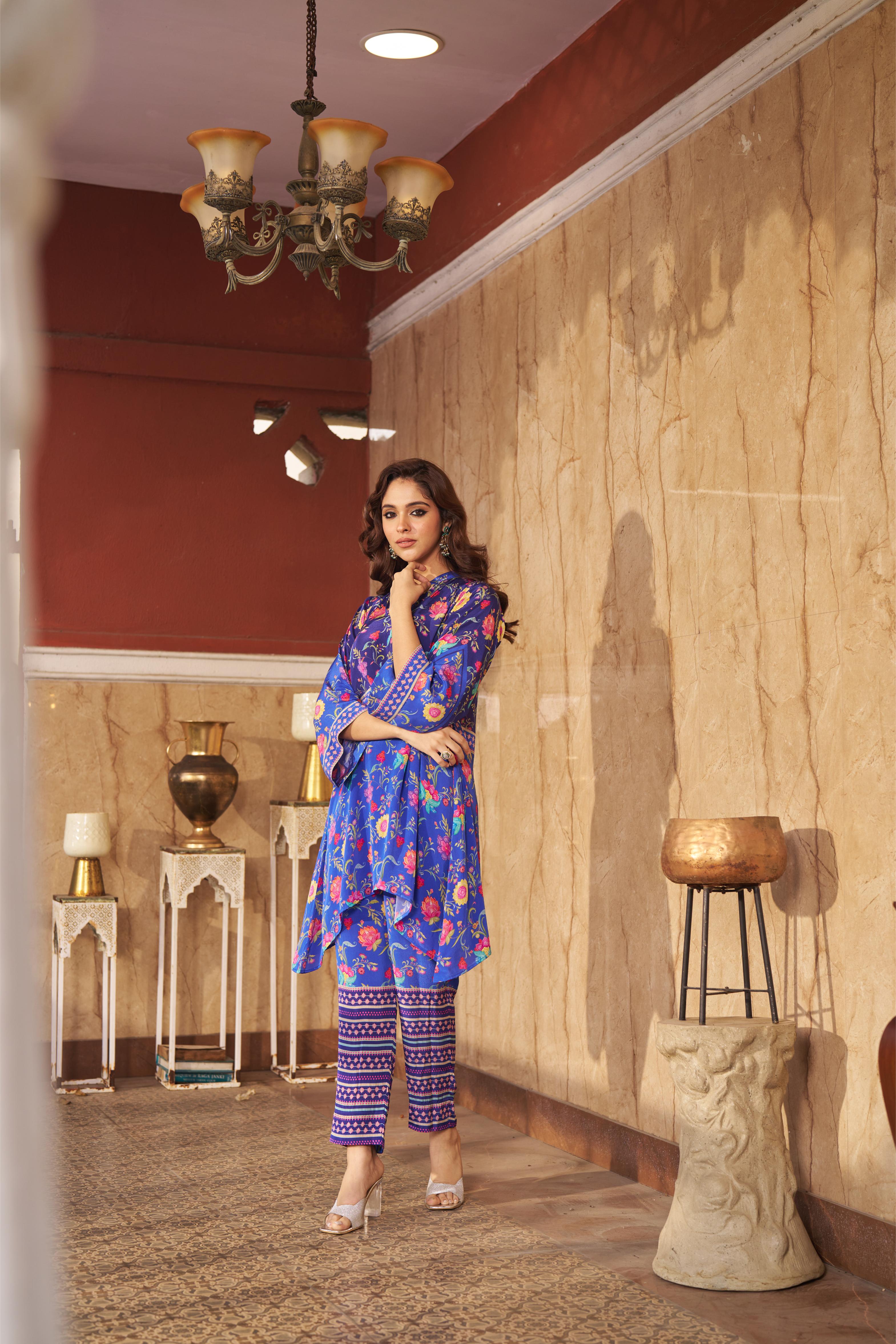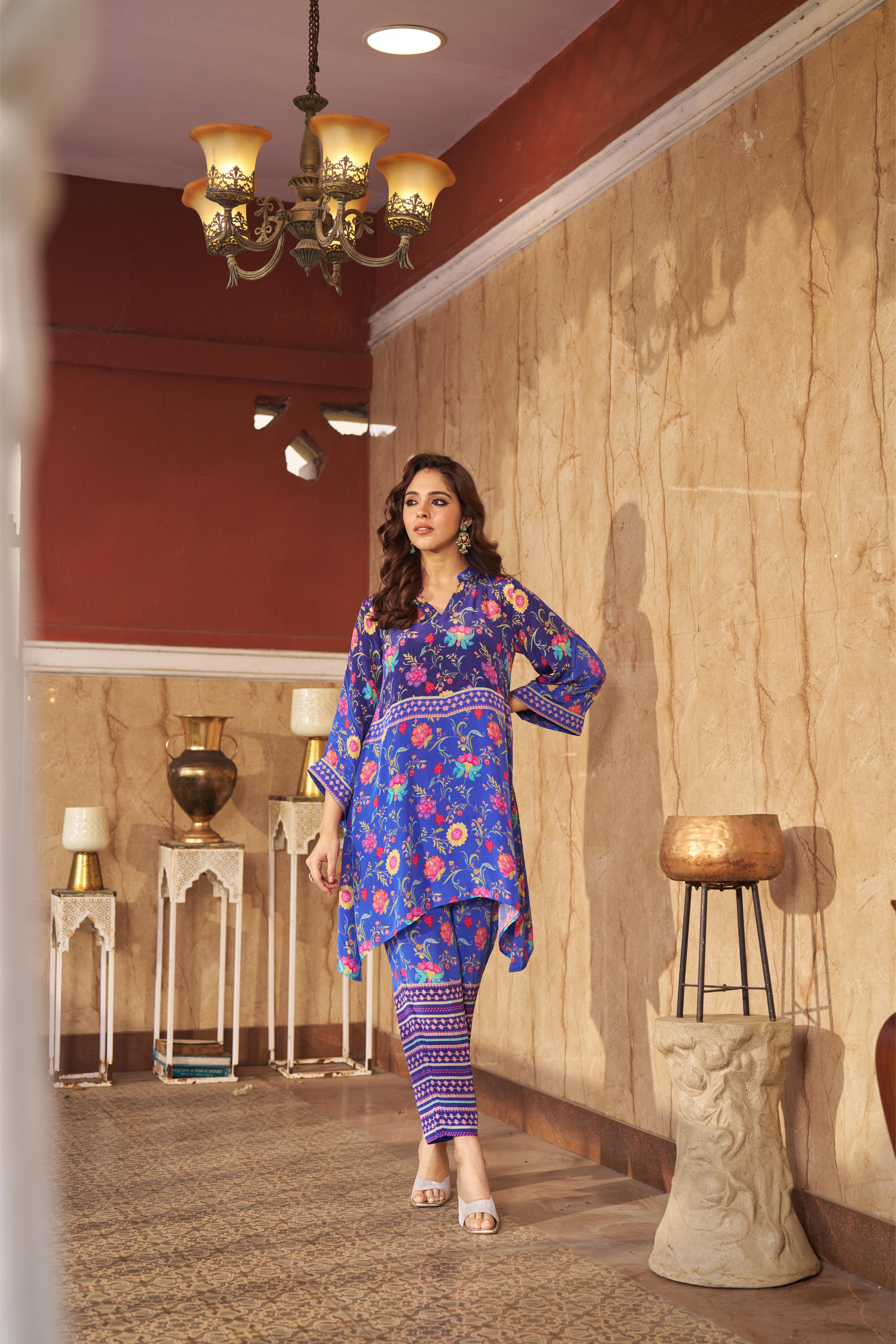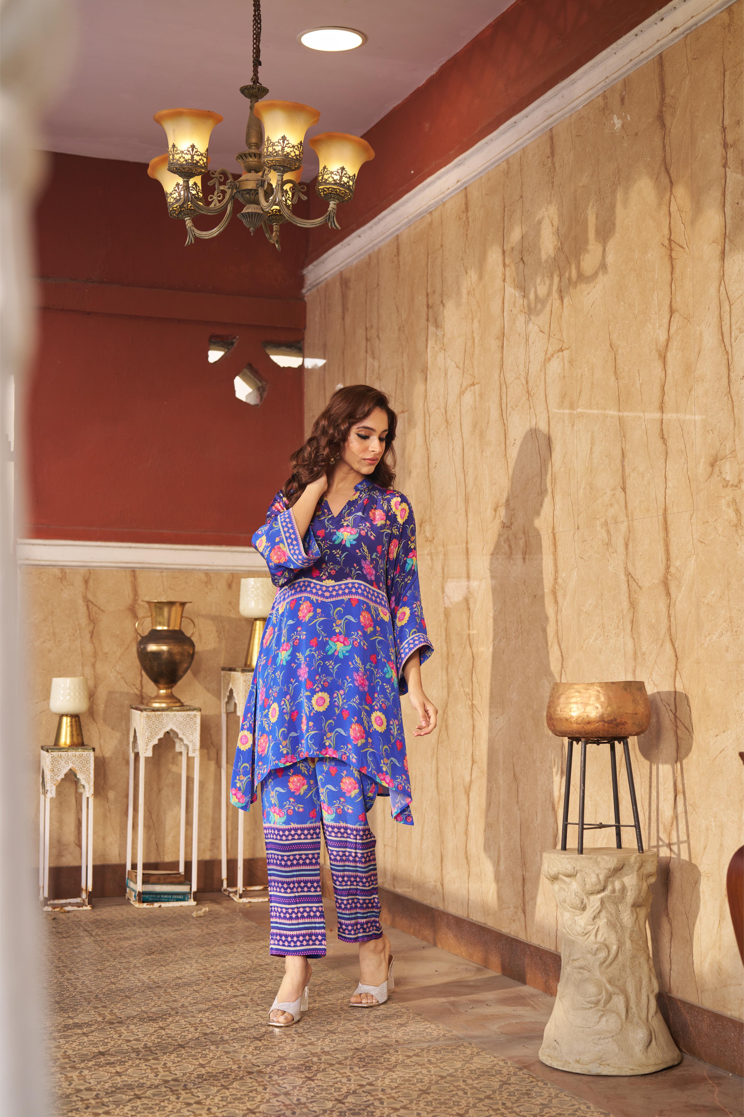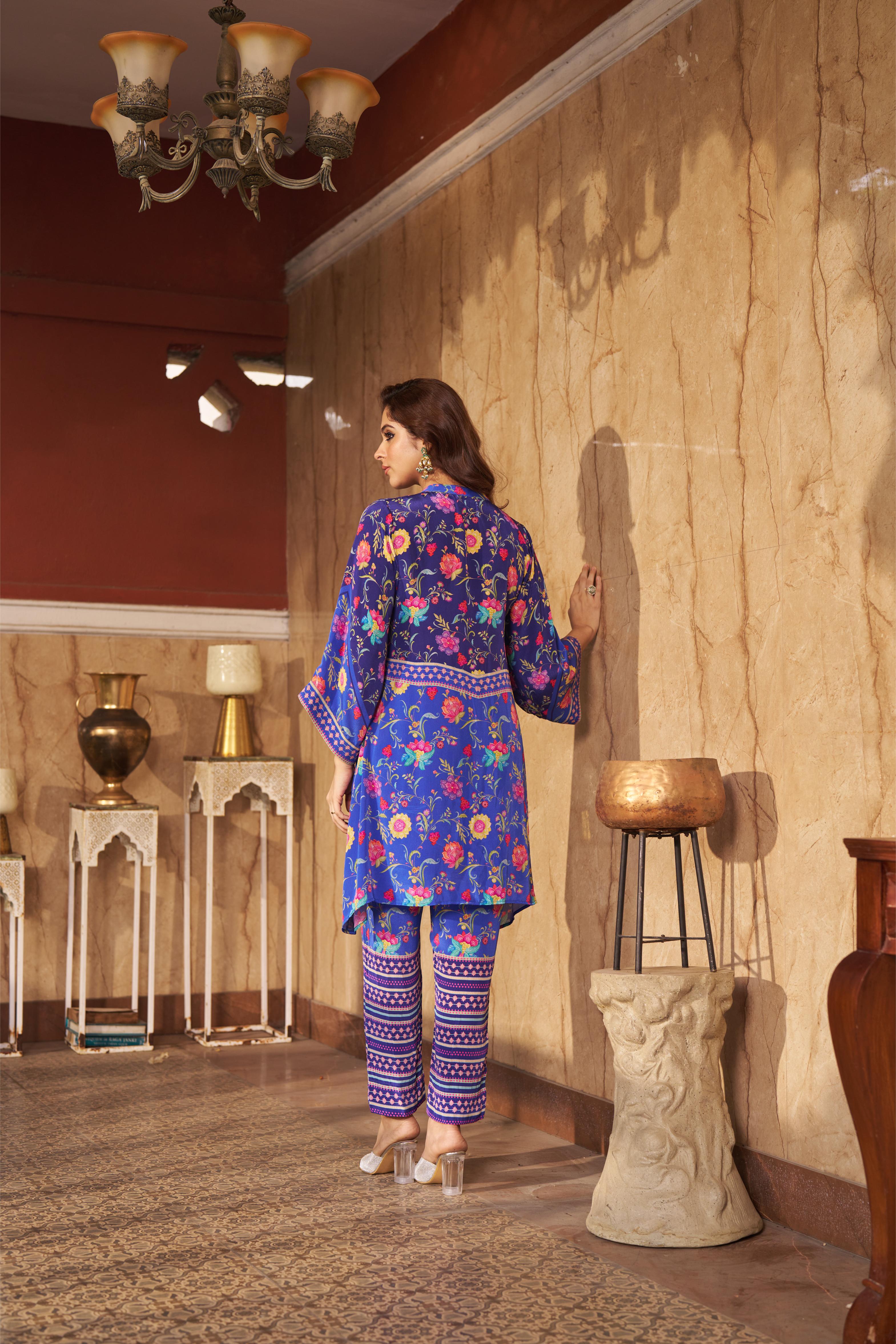 Featuring Digital Printed Floral Short Kurta With Straight Pants In Cotton Silk.