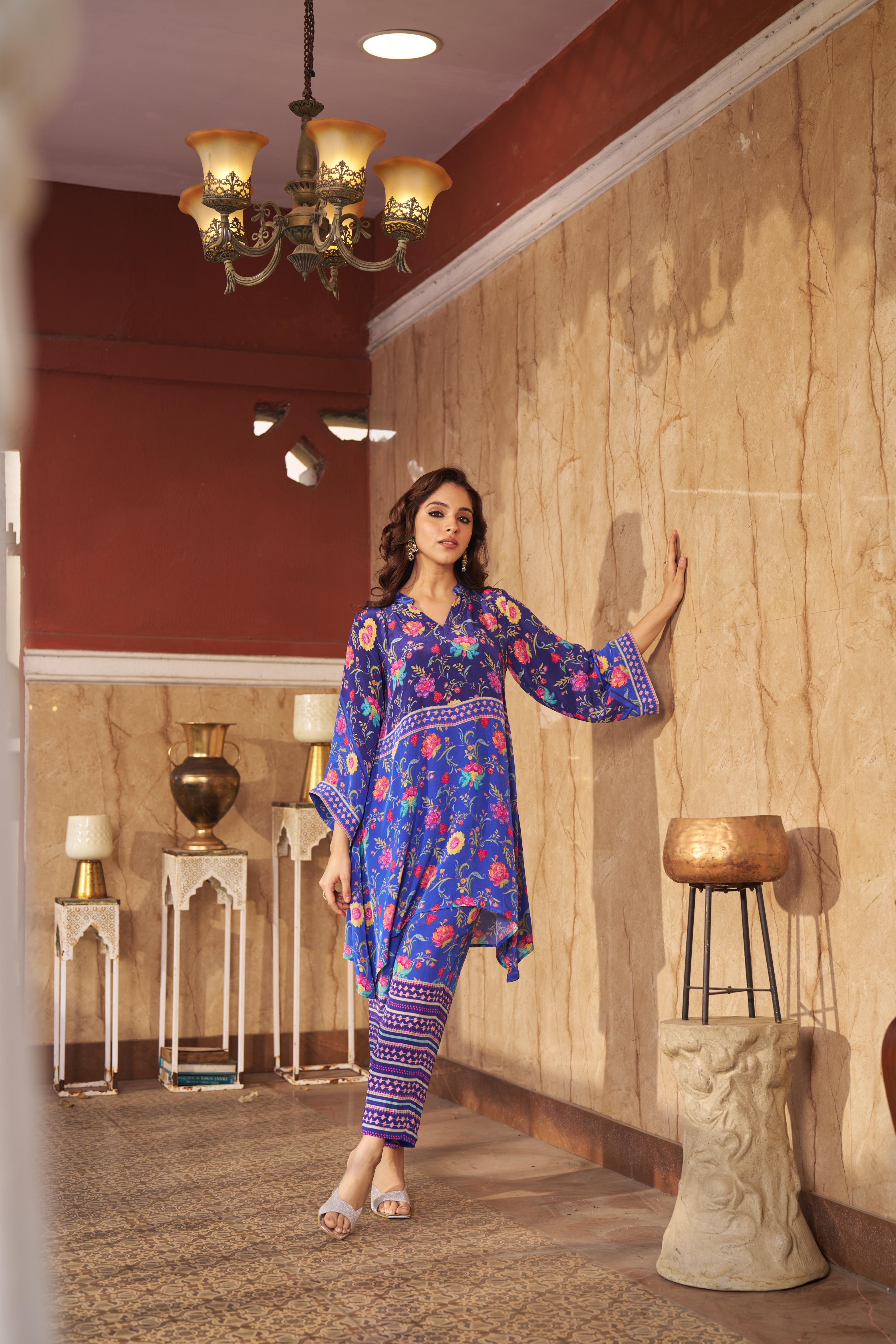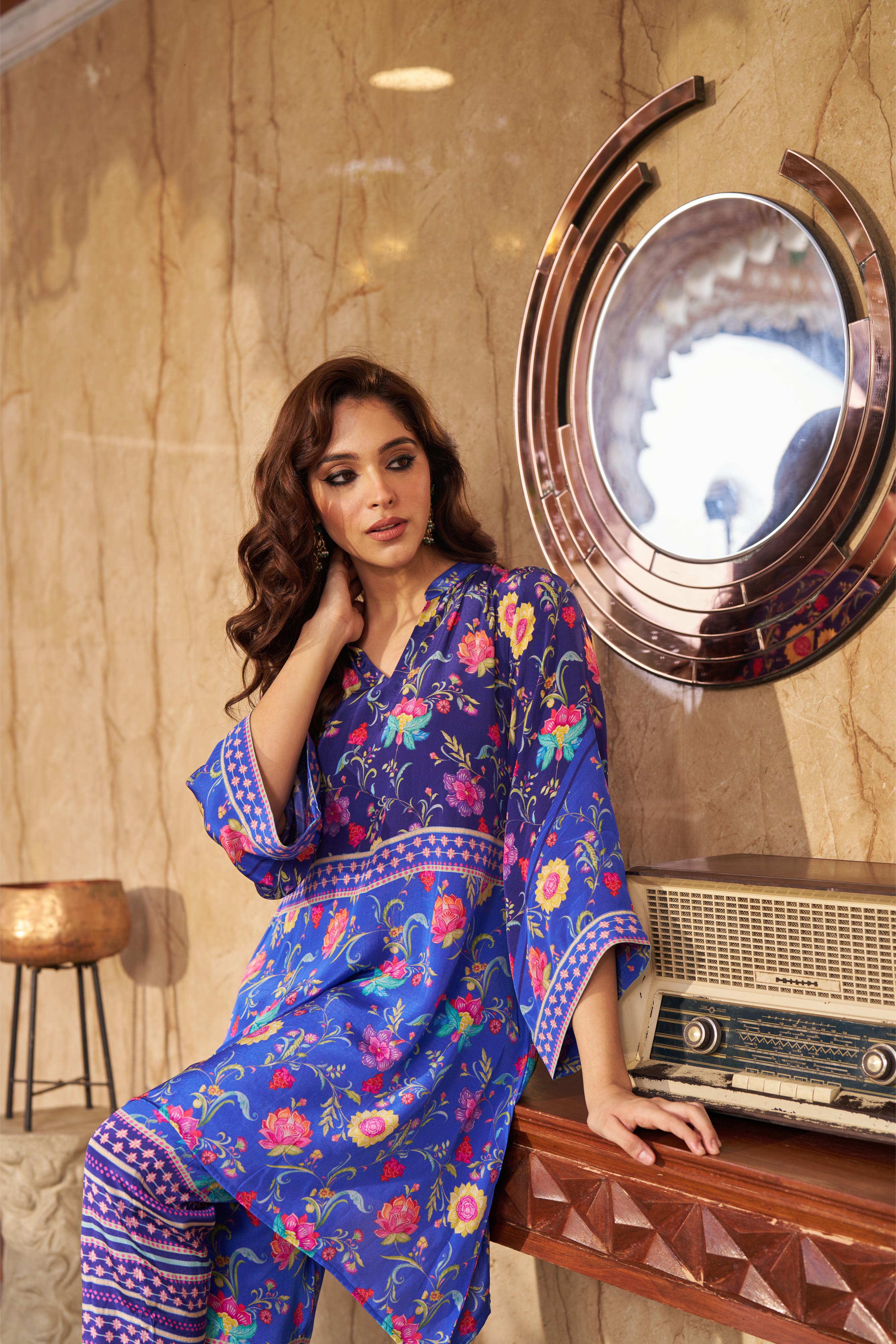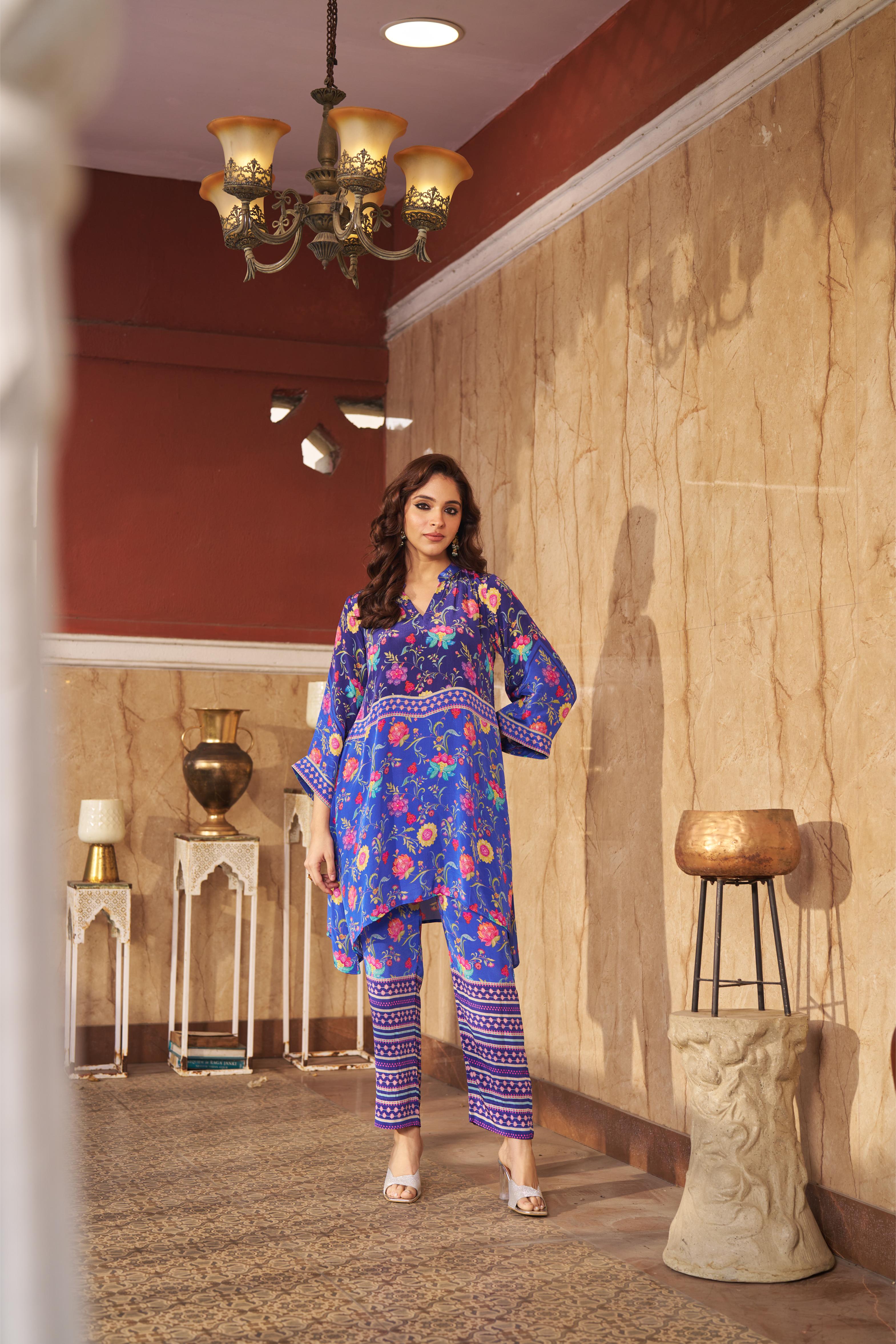 Featuring Digital Printed Floral Short Kurta With Straight Pants In Cotton Silk.