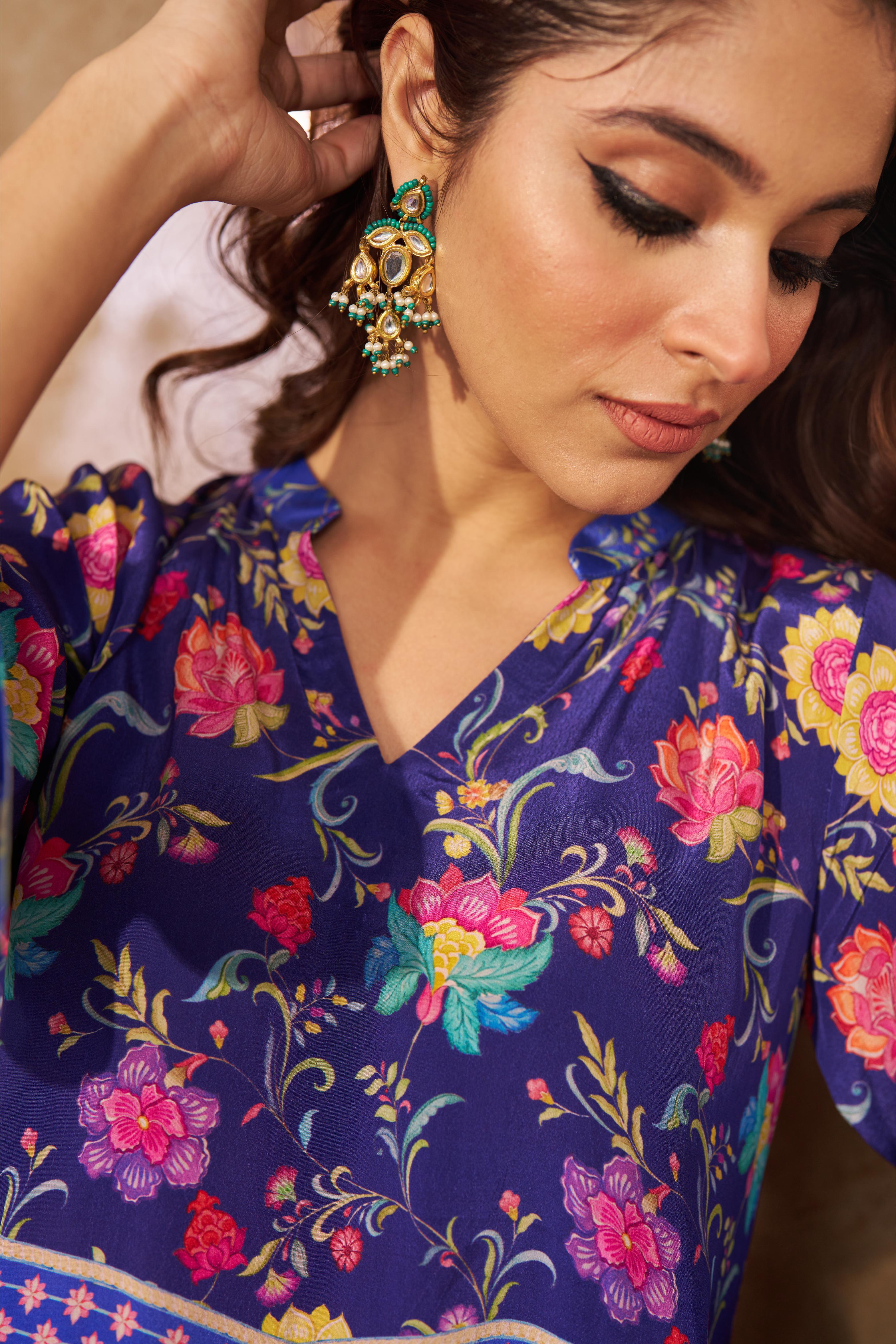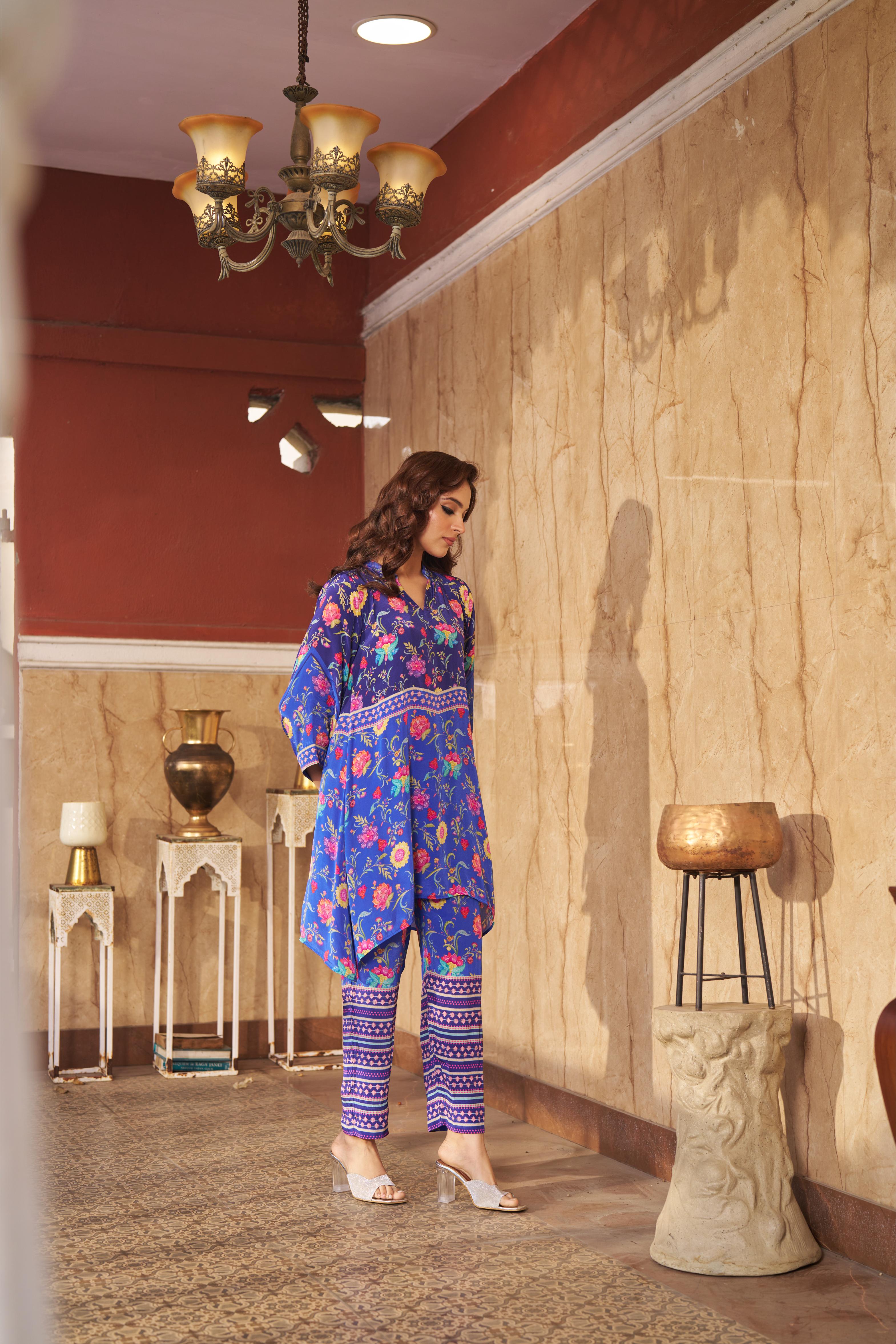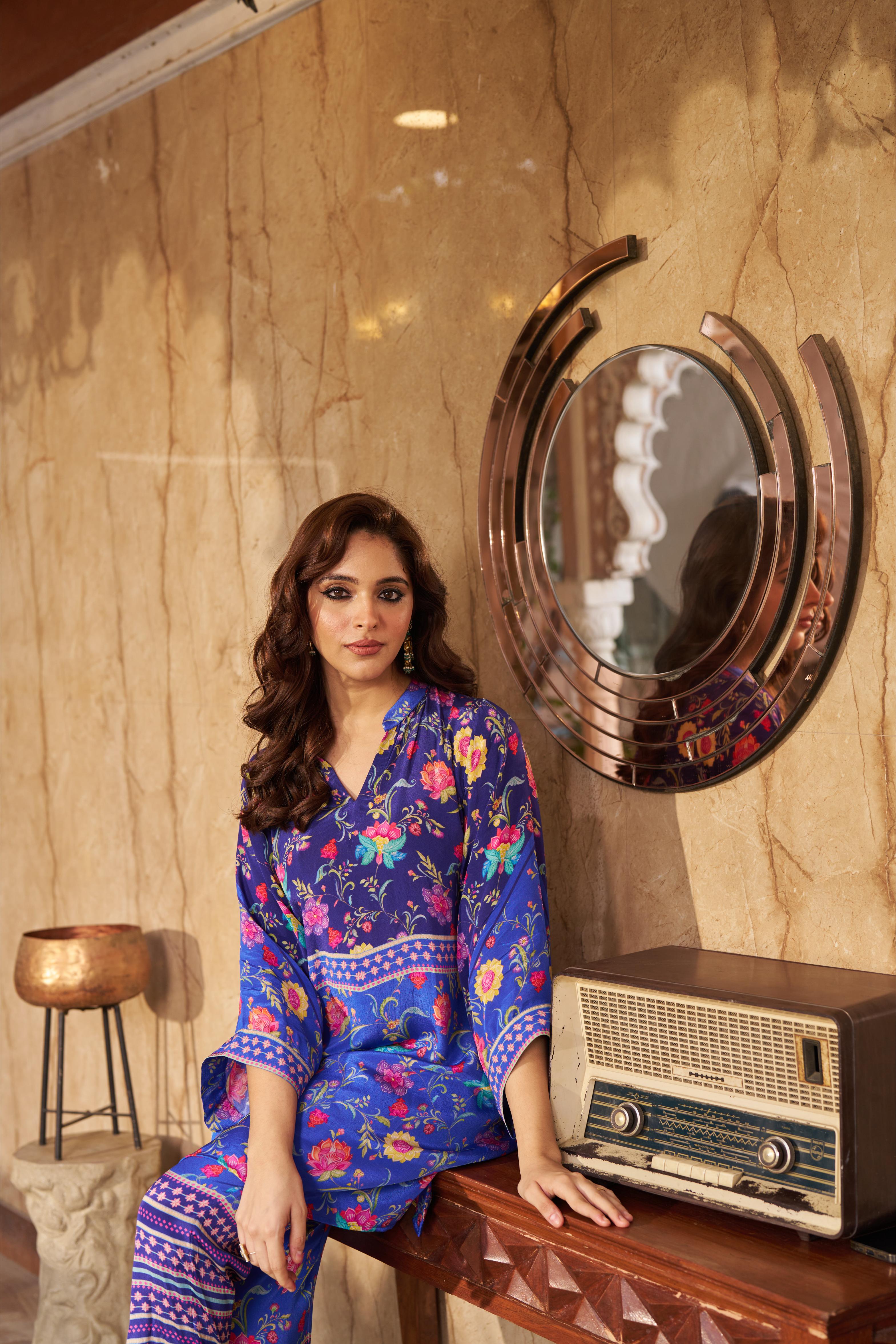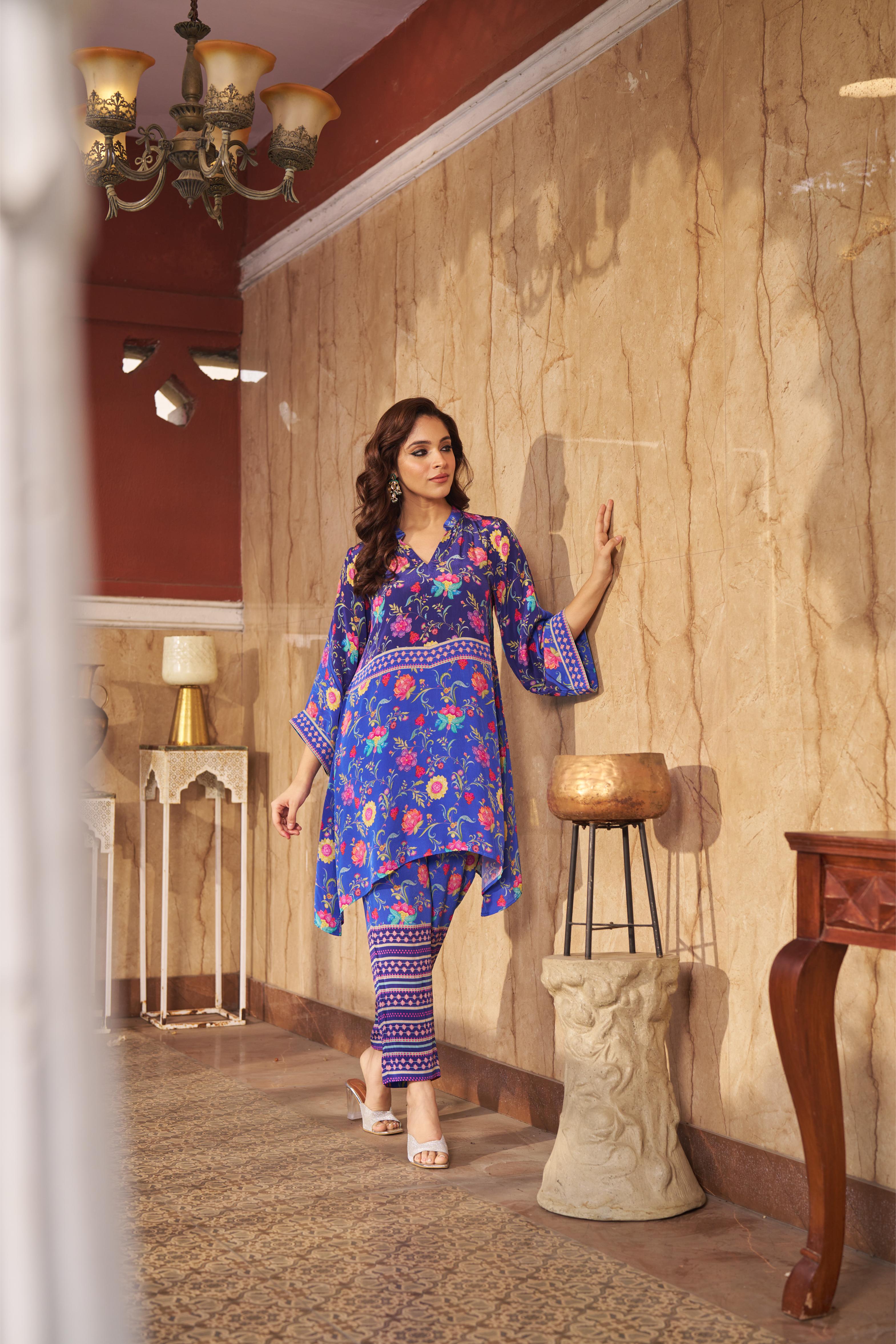 Featuring Digital Printed Floral Short Kurta With Straight Pants In Cotton Silk.
