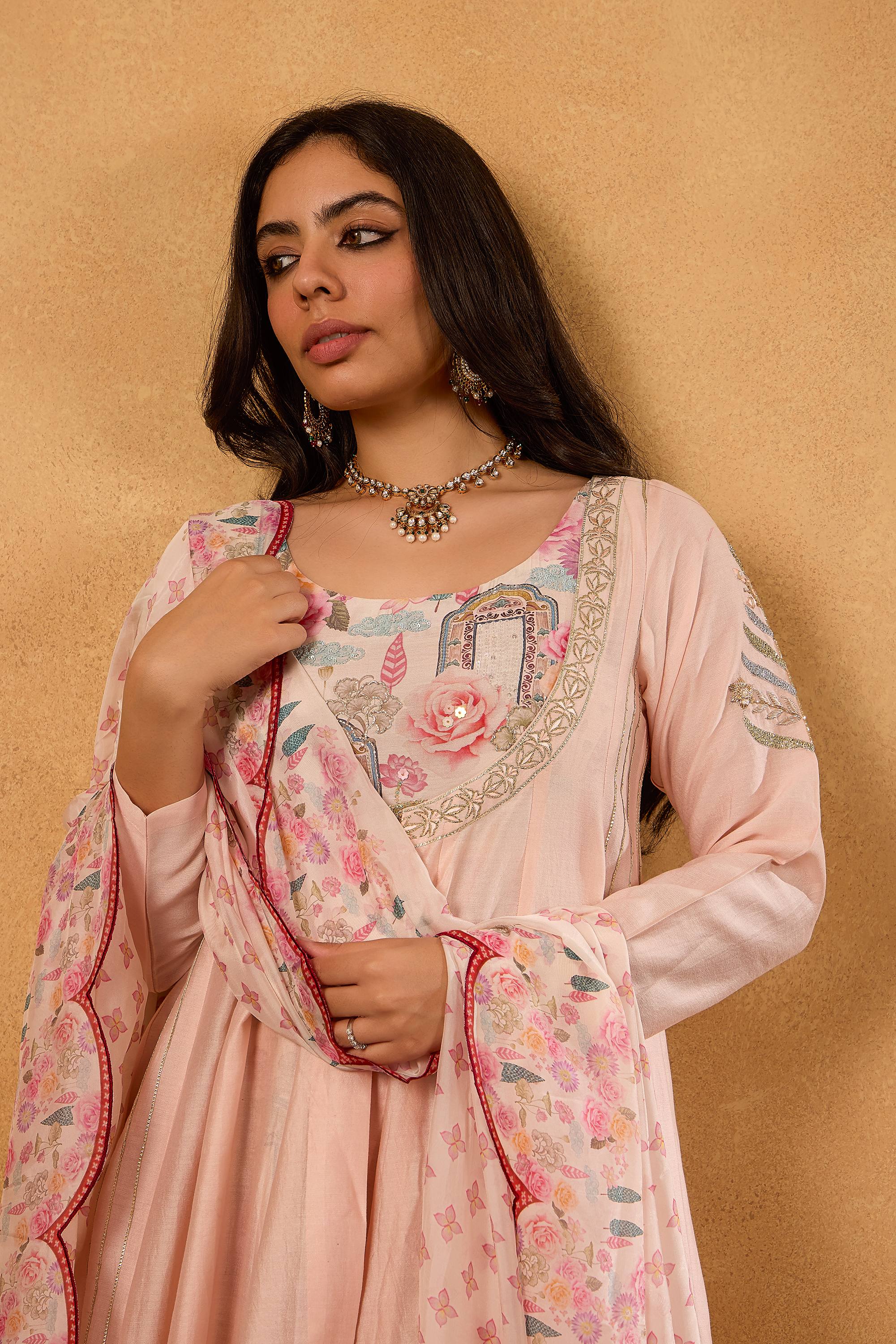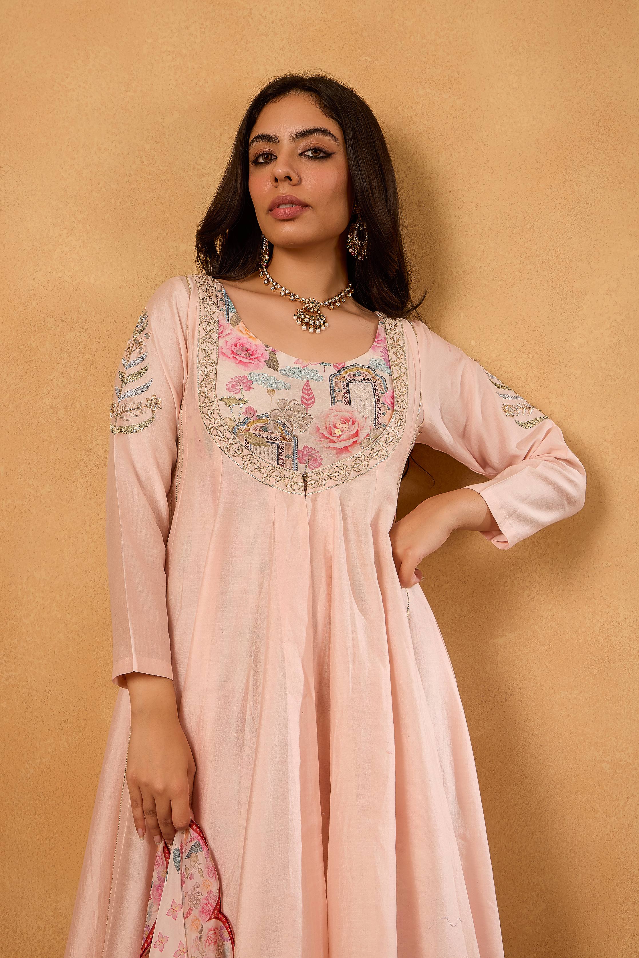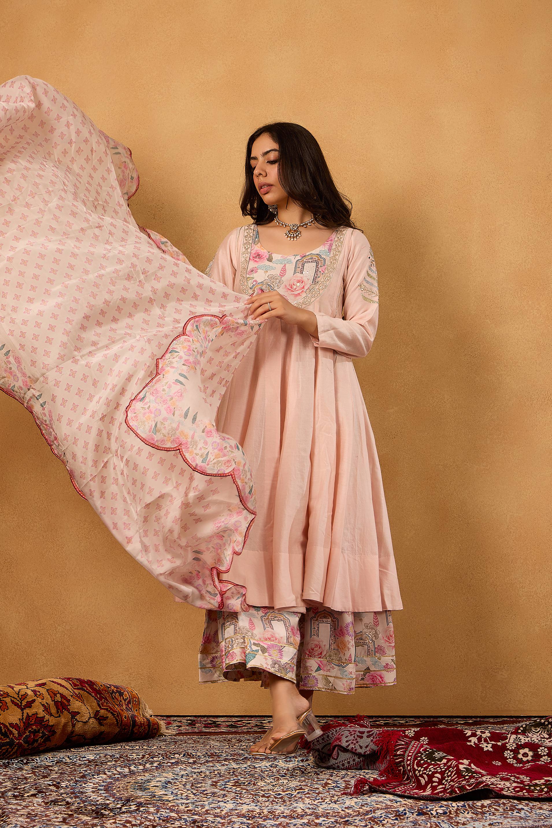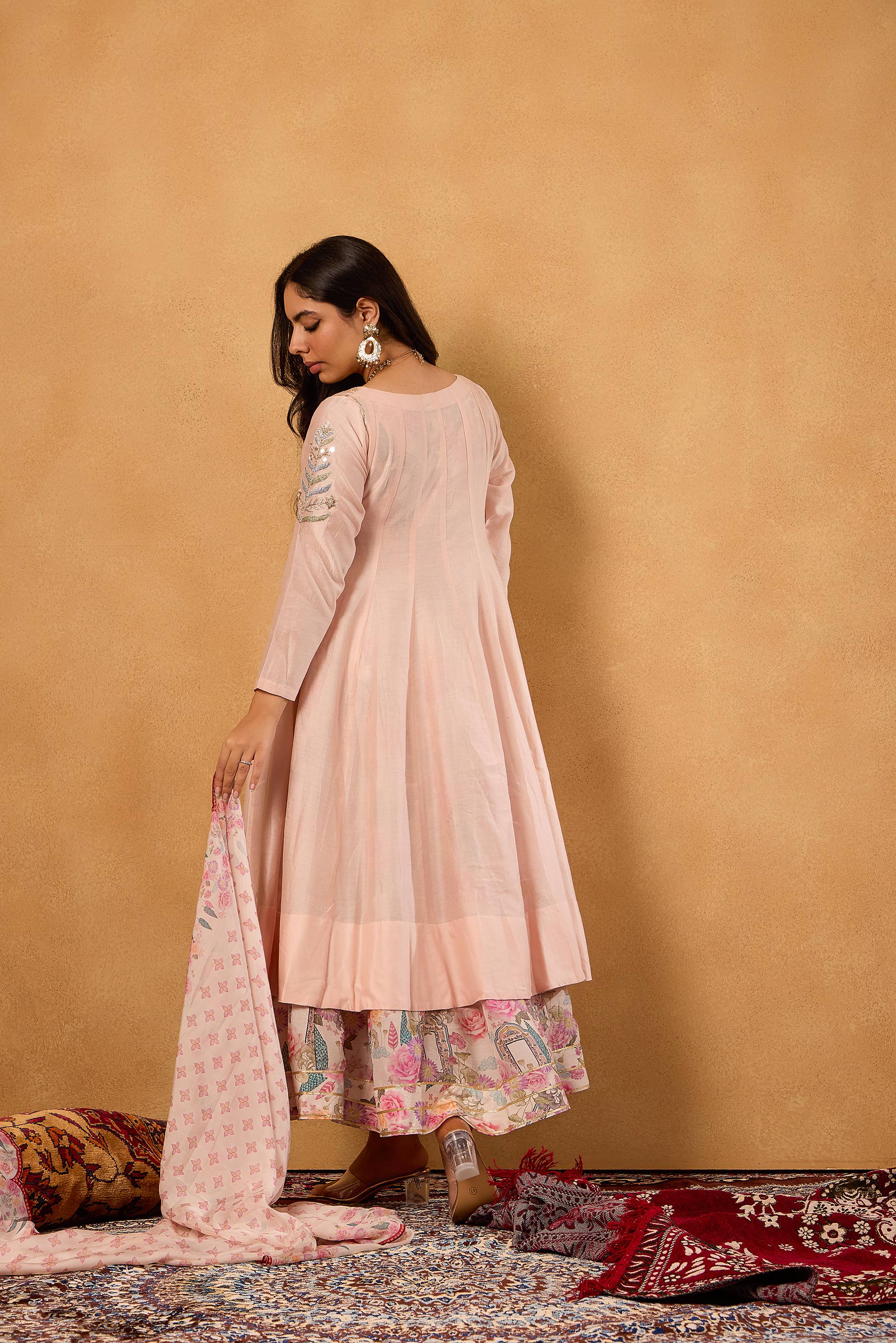 The set includes a printed long kurta in cotton silk, paired with a silk chanderi jacket and a silk dupatta, creating a seamless harmony of texture and elegance. Perfect for festive gatherings or sophisticated daytime occasions, the Dastan Kurta Set is a true ode to effortless grace and enduring style.