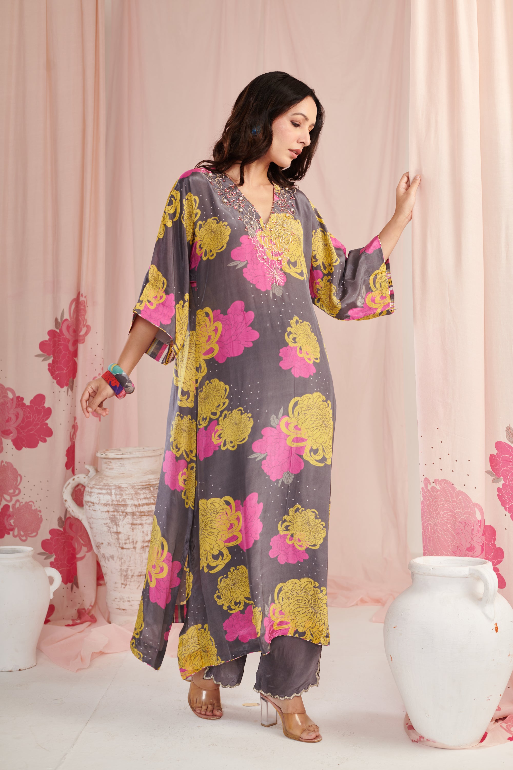 Exquisite grey bloom Kaftaan