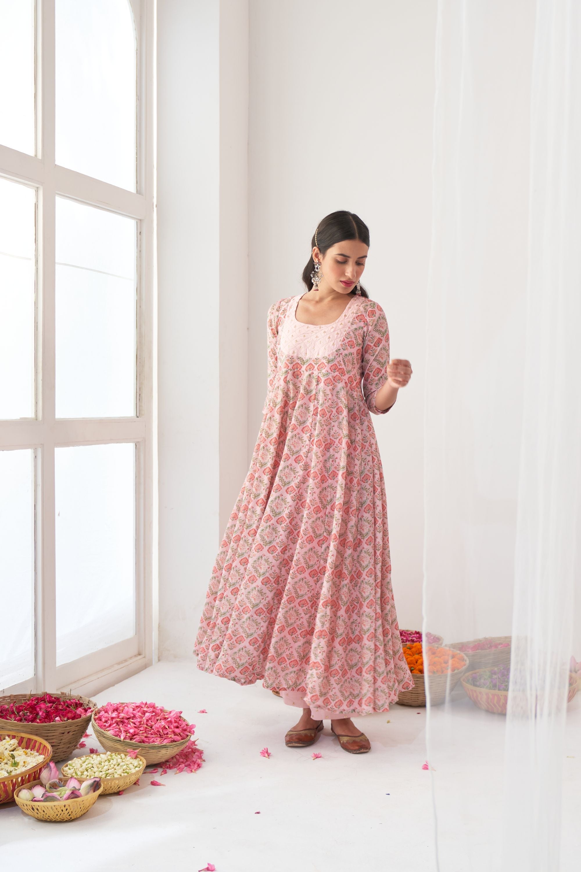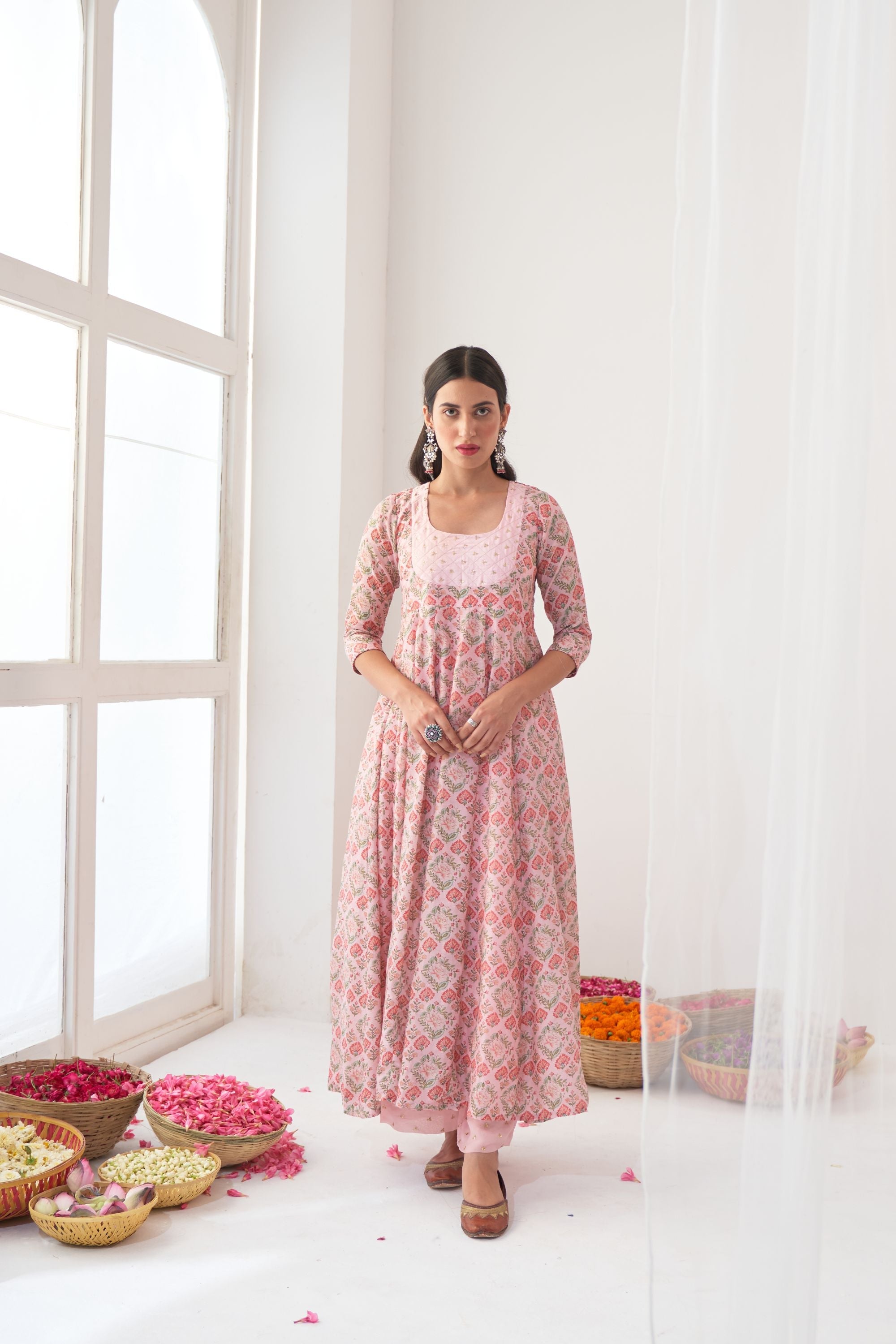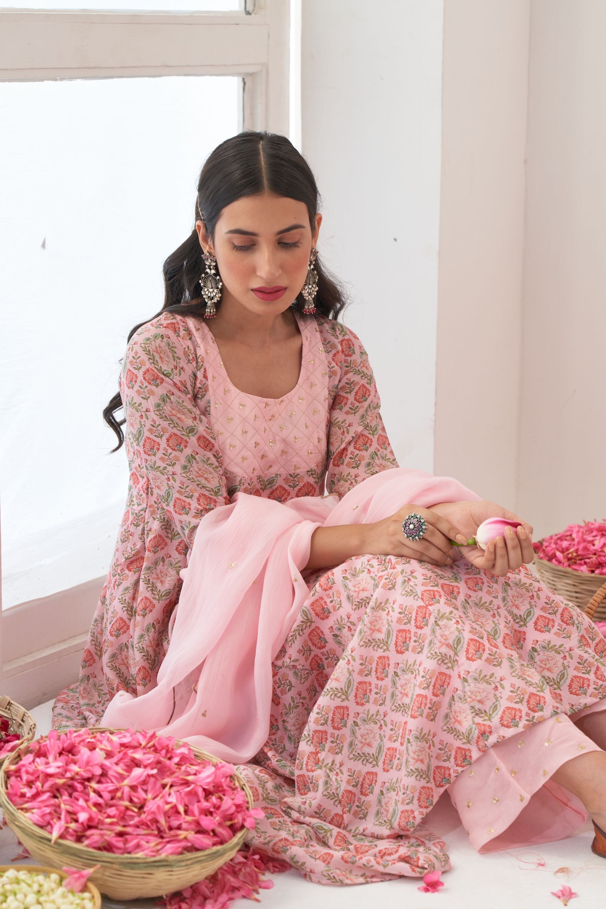 Powder Pink Peony Embroidered Anarkali