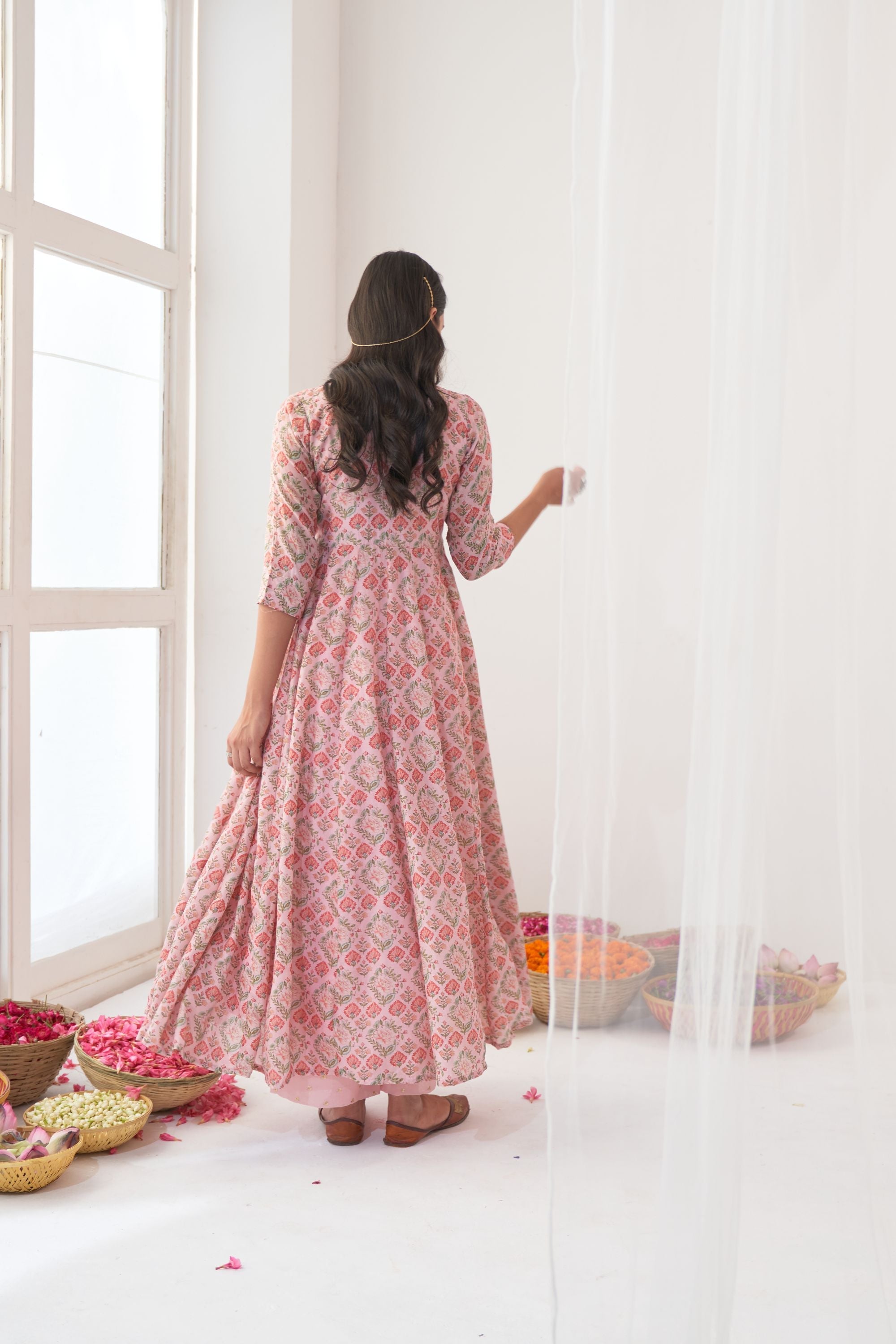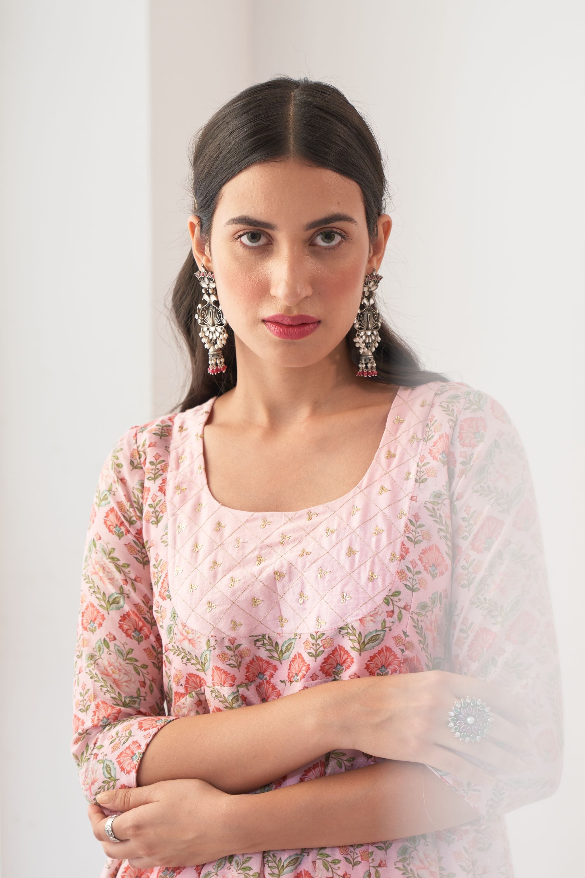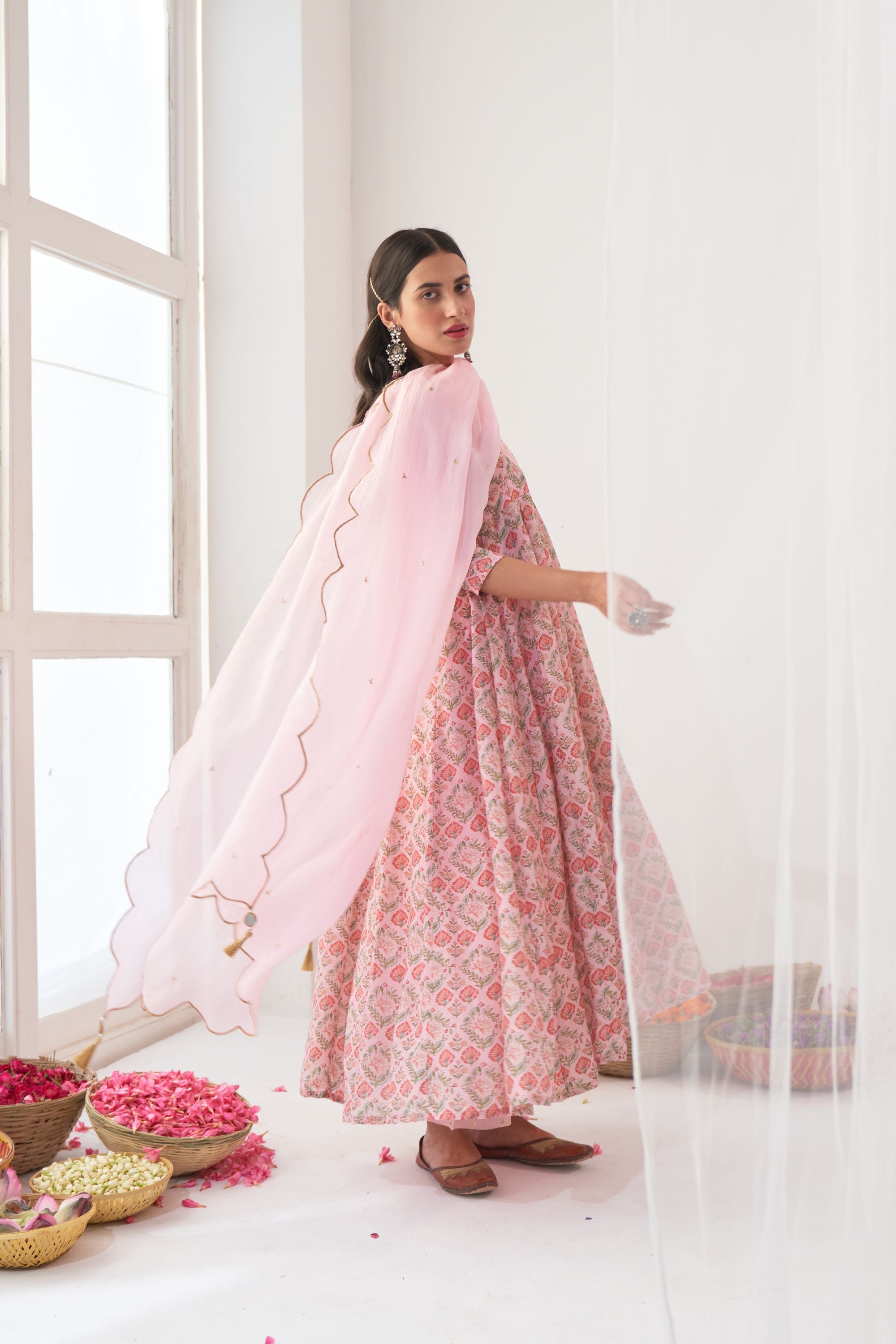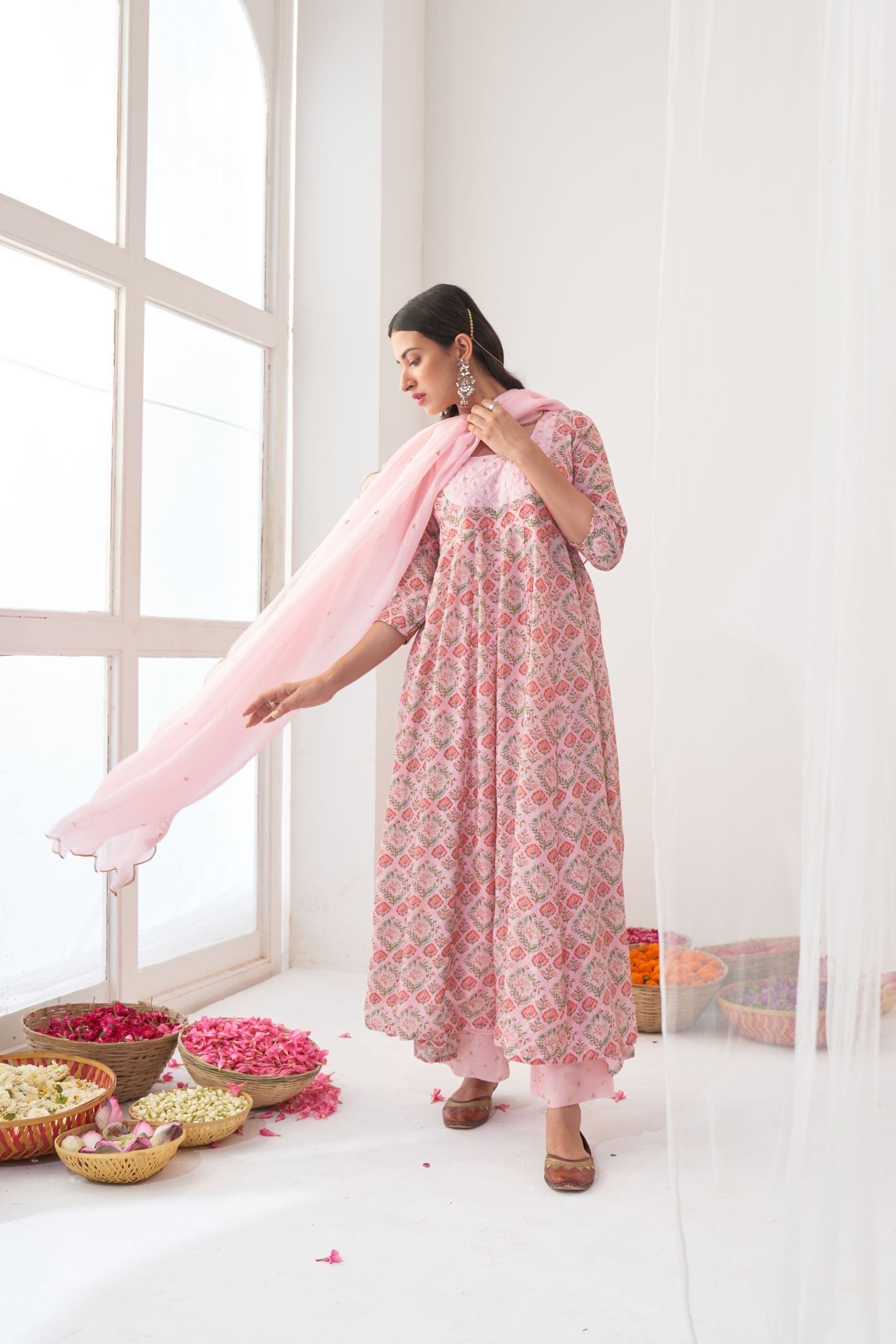 Powder Pink Peony Embroidered Anarkali