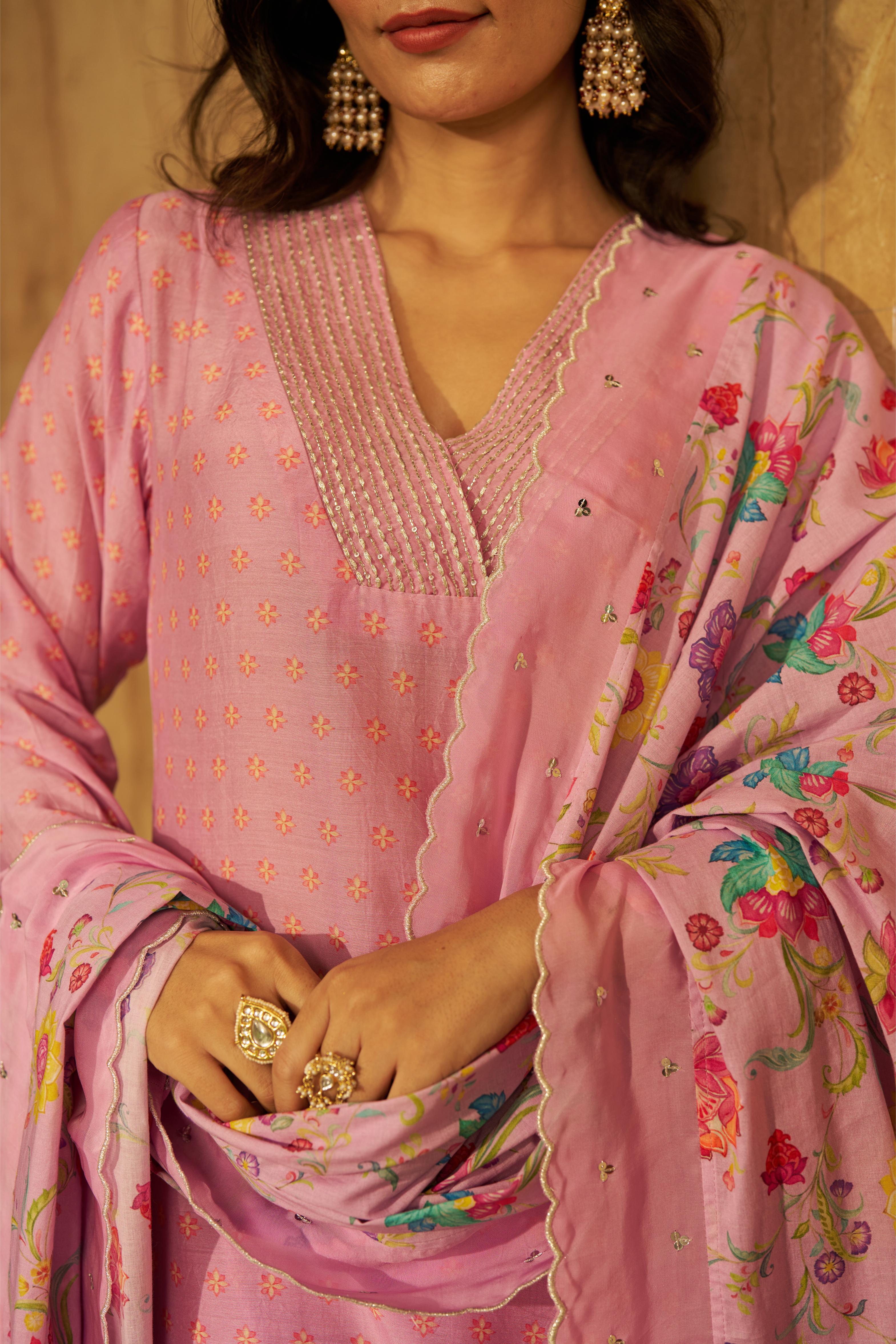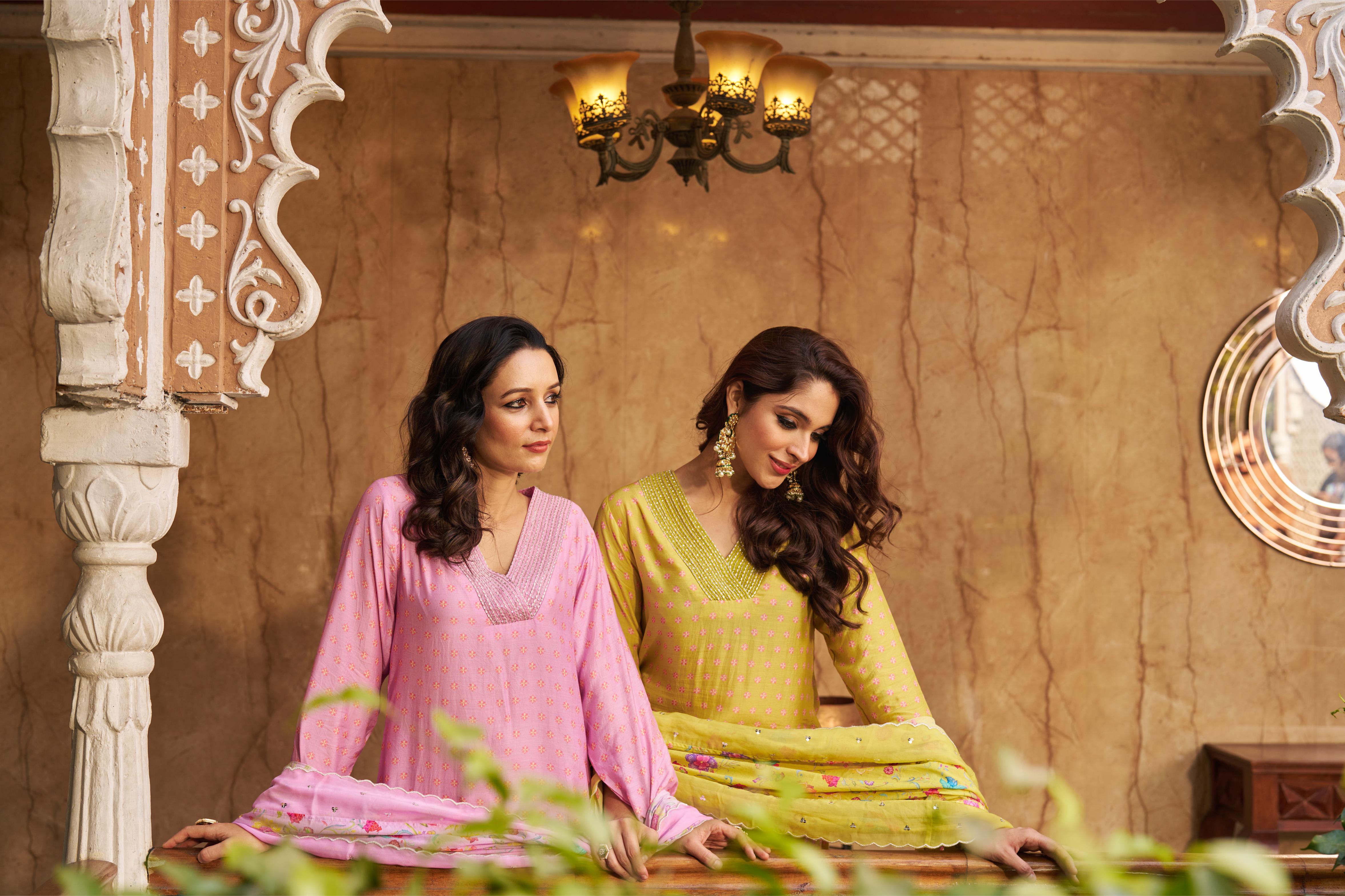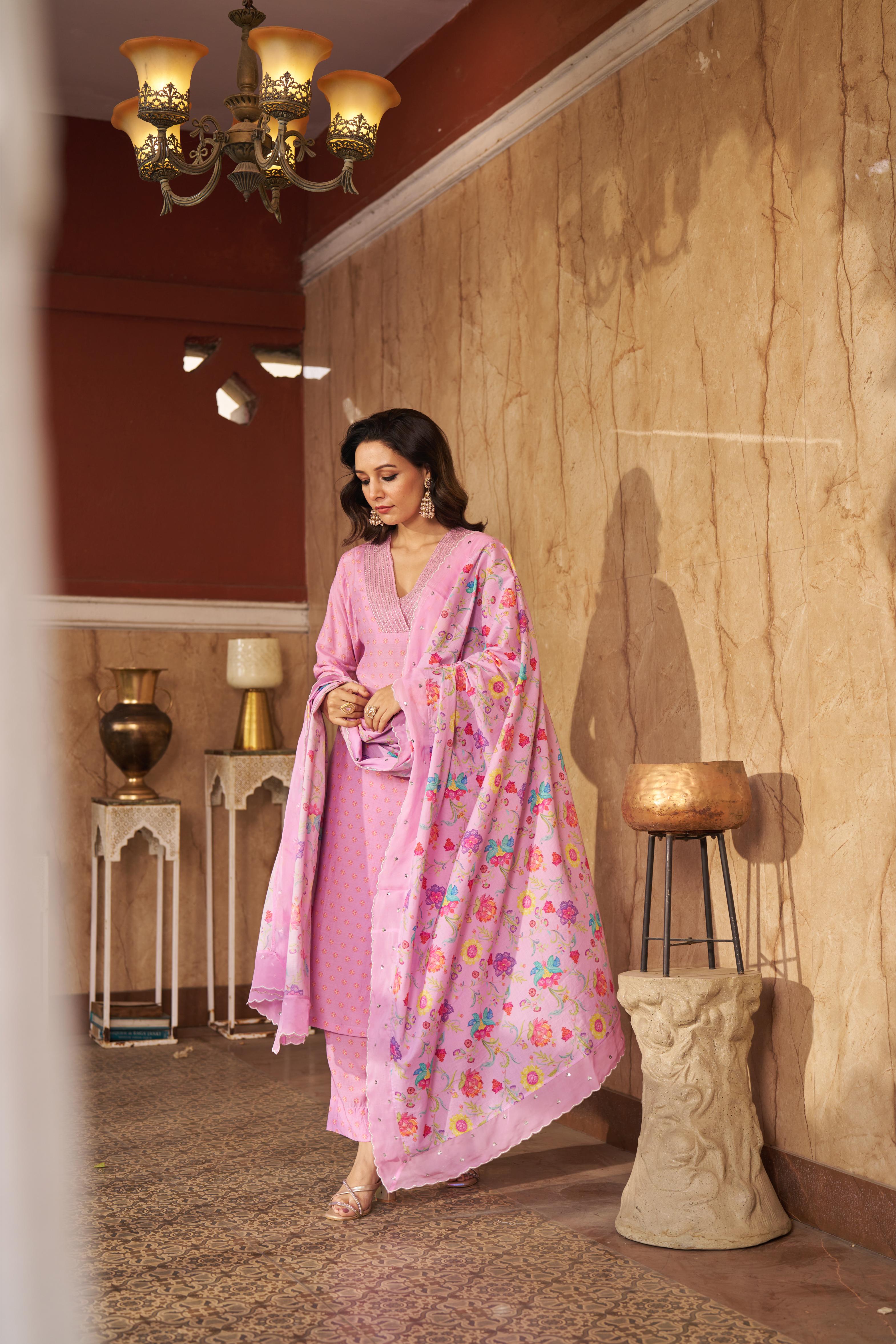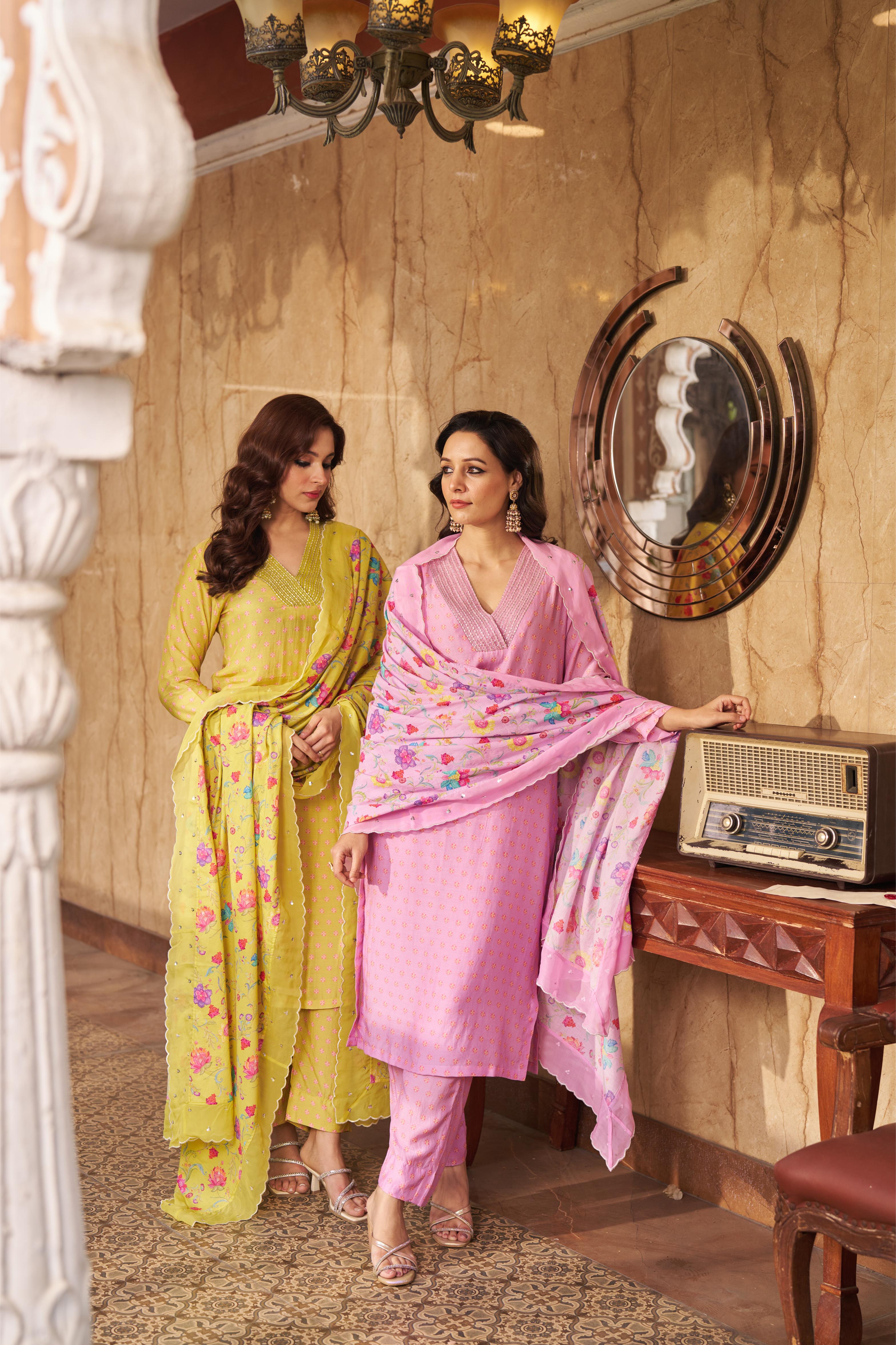 Featuring Shirt And Pant Of Cotton Silk With Zari And Cut Dana Work On Neck Line
