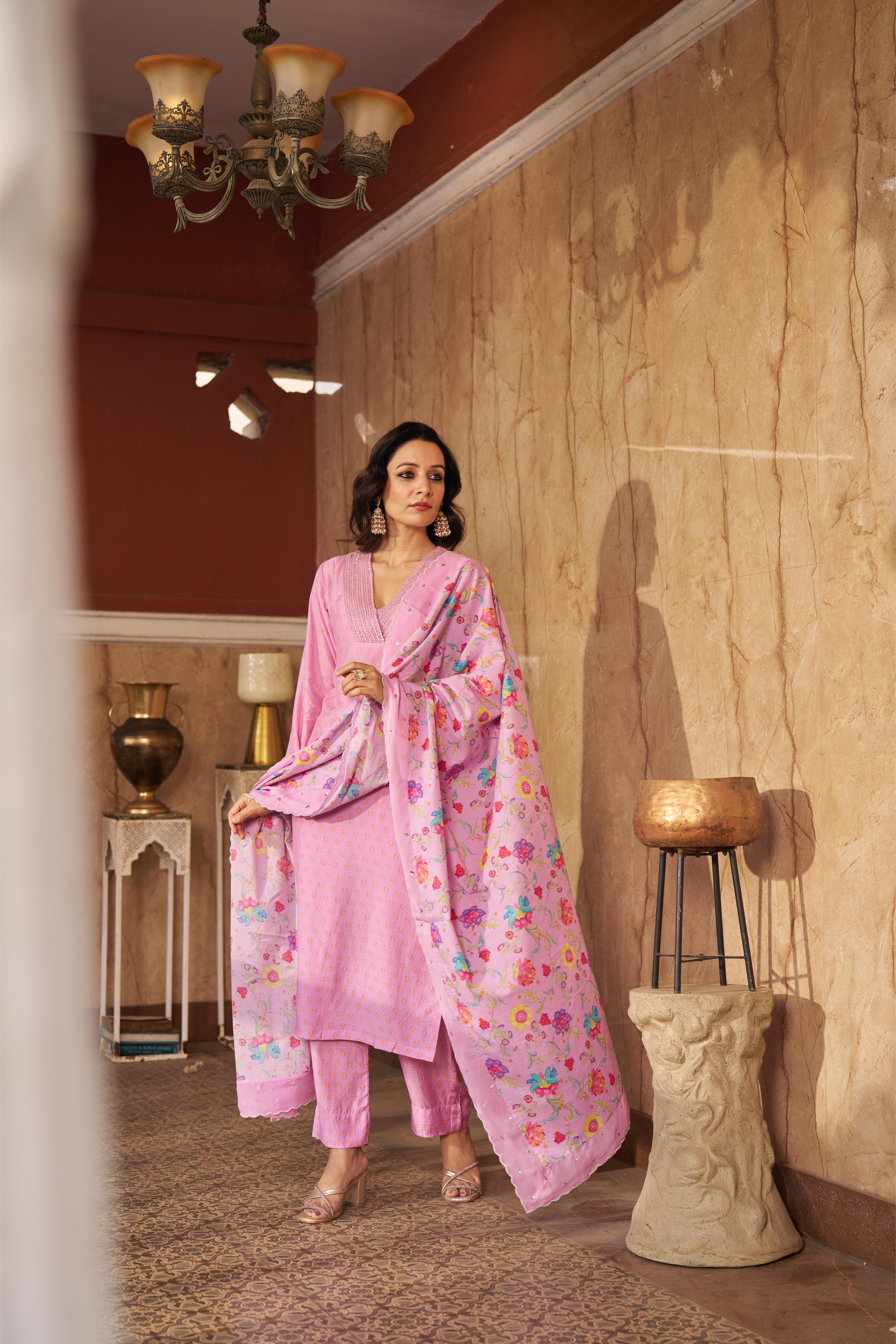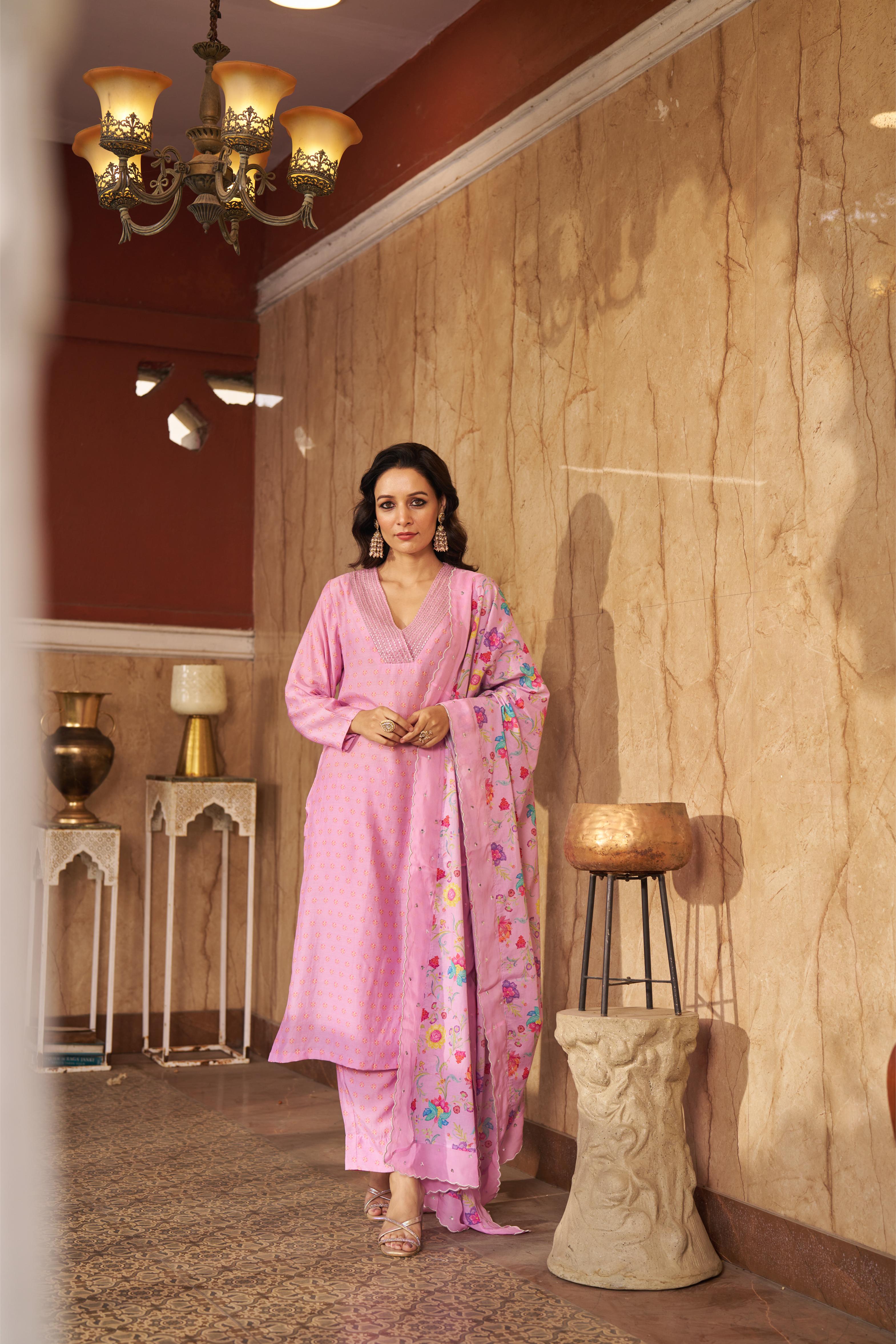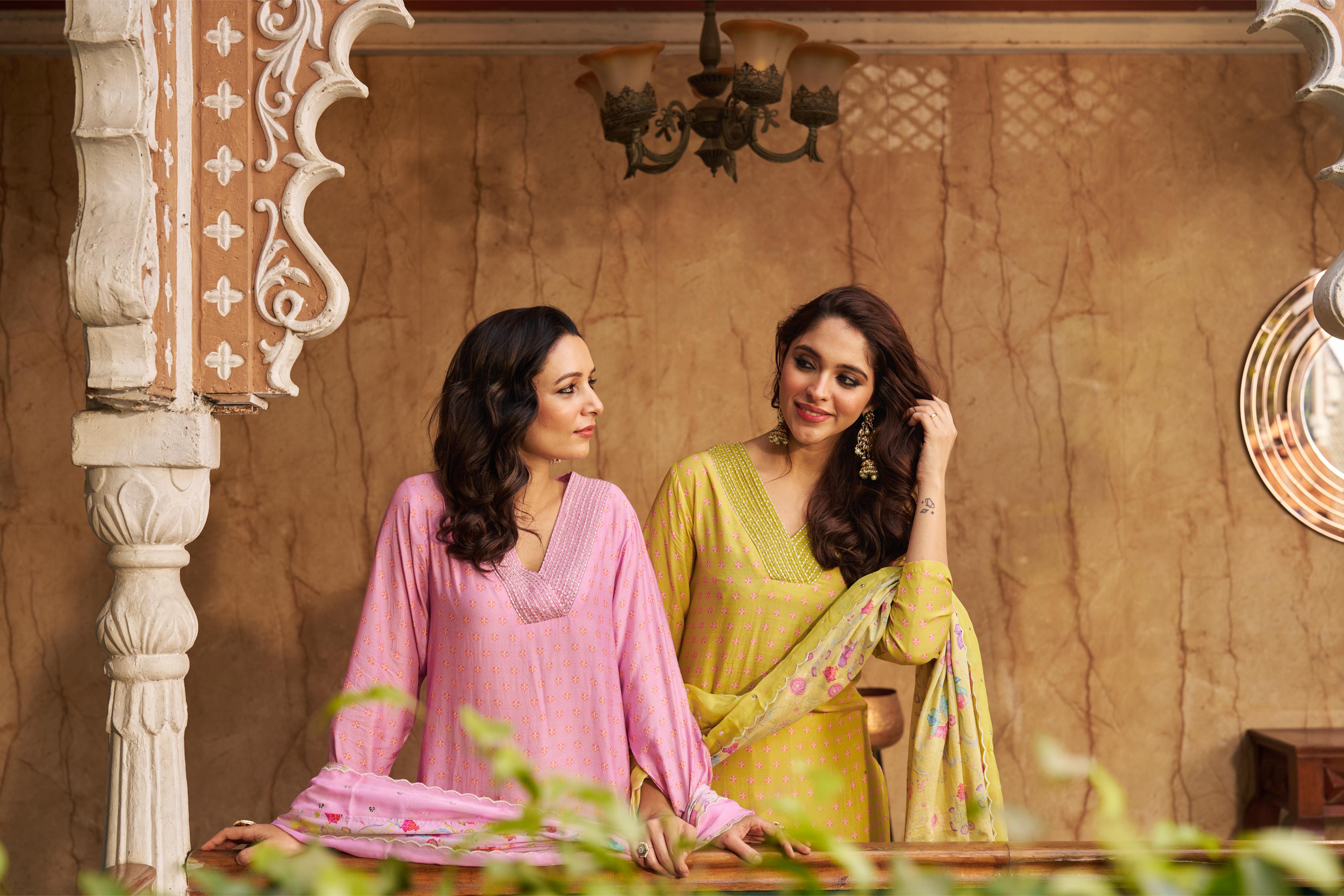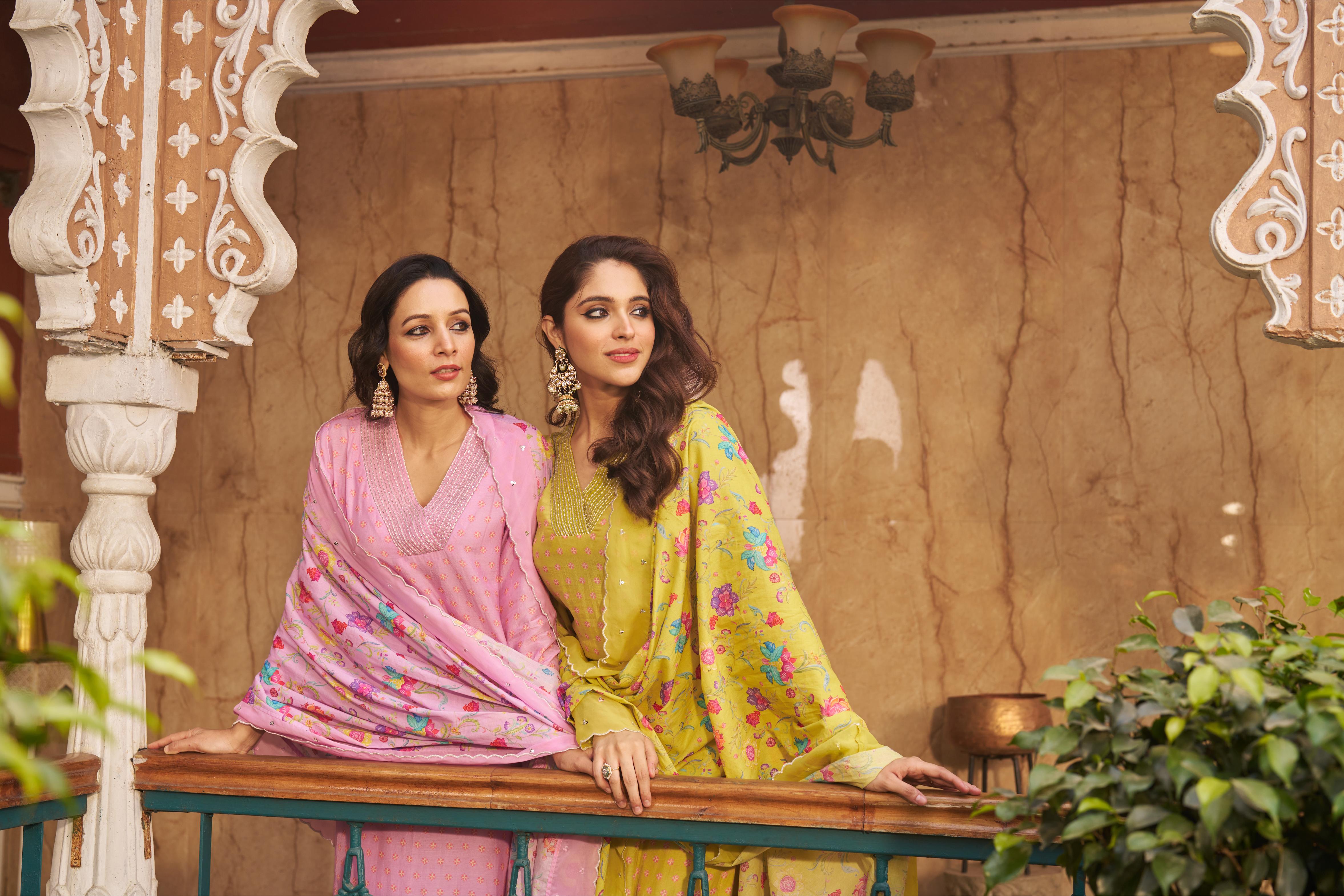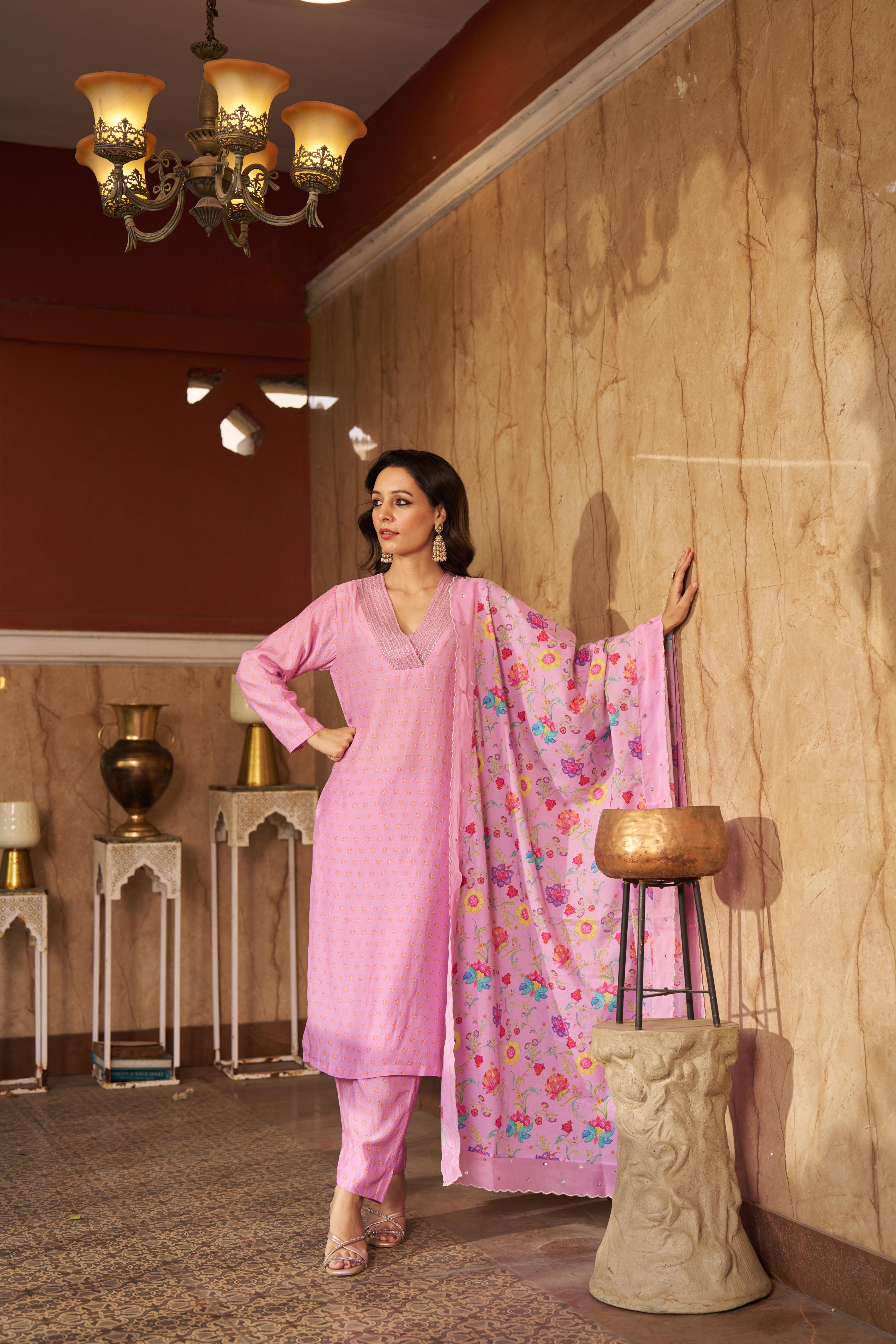 Featuring Shirt And Pant Of Cotton Silk With Zari And Cut Dana Work On Neck Line