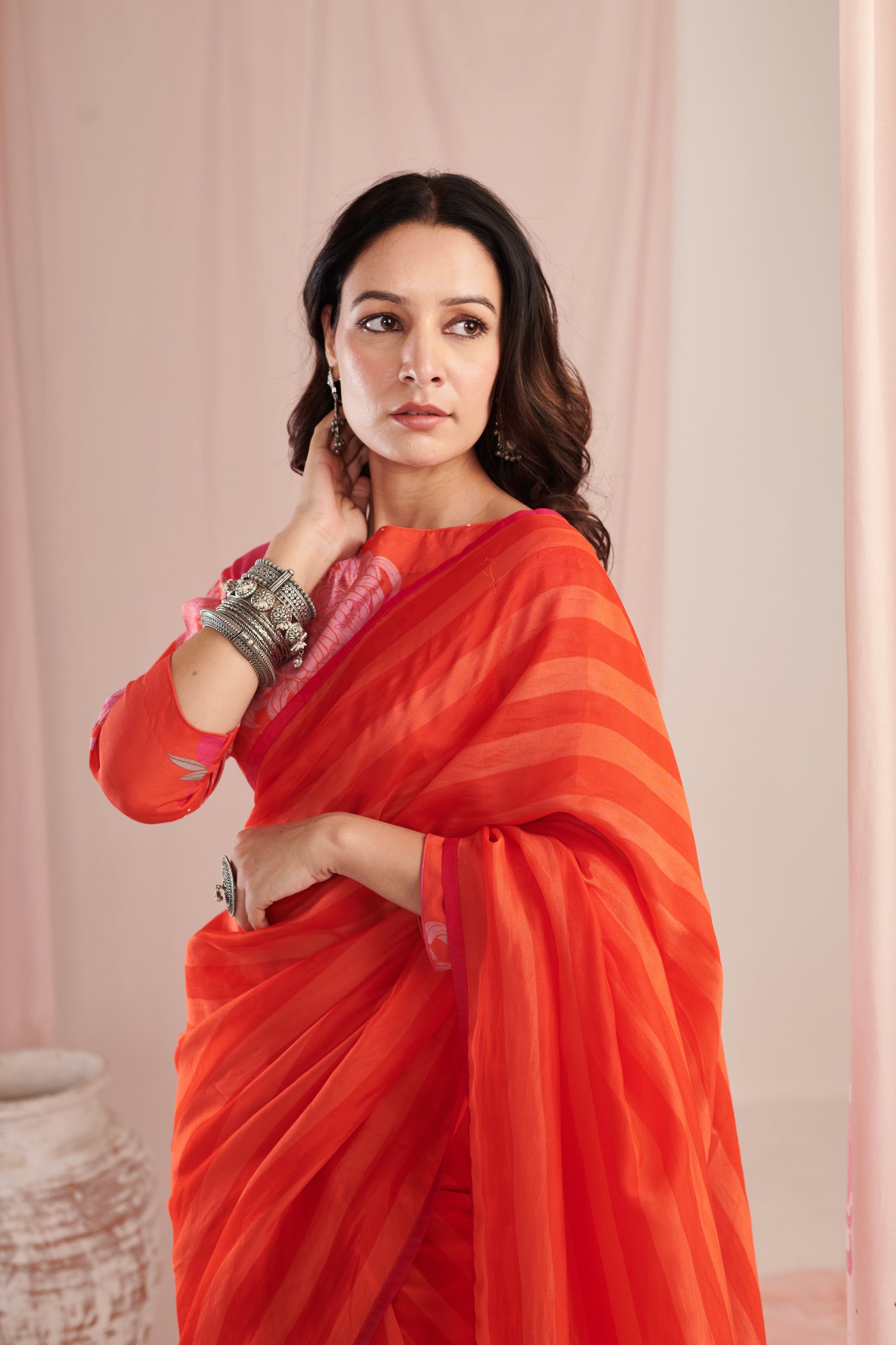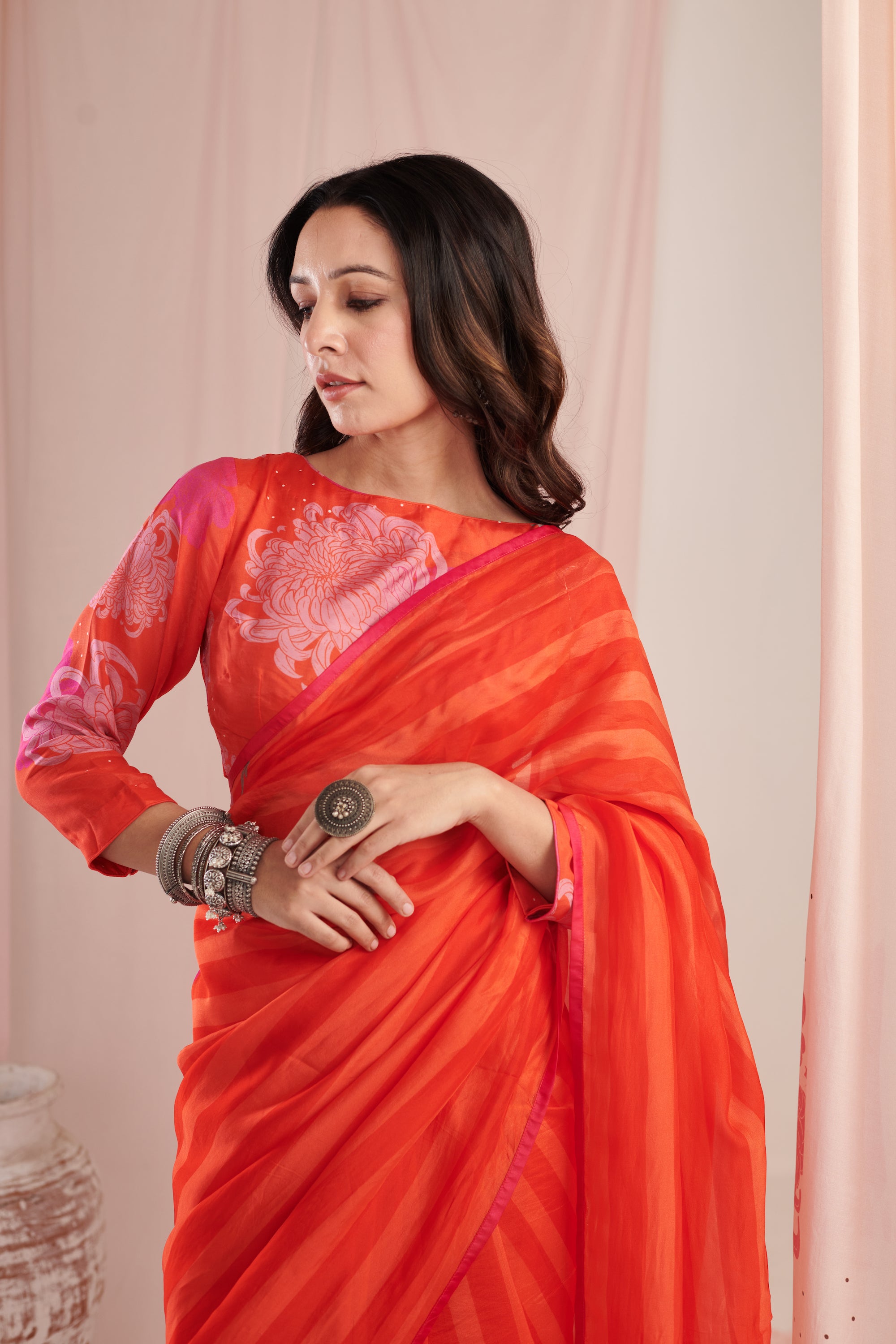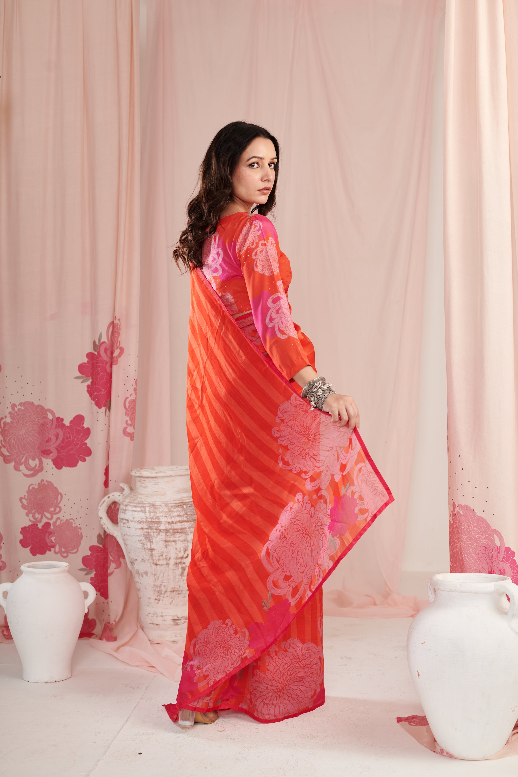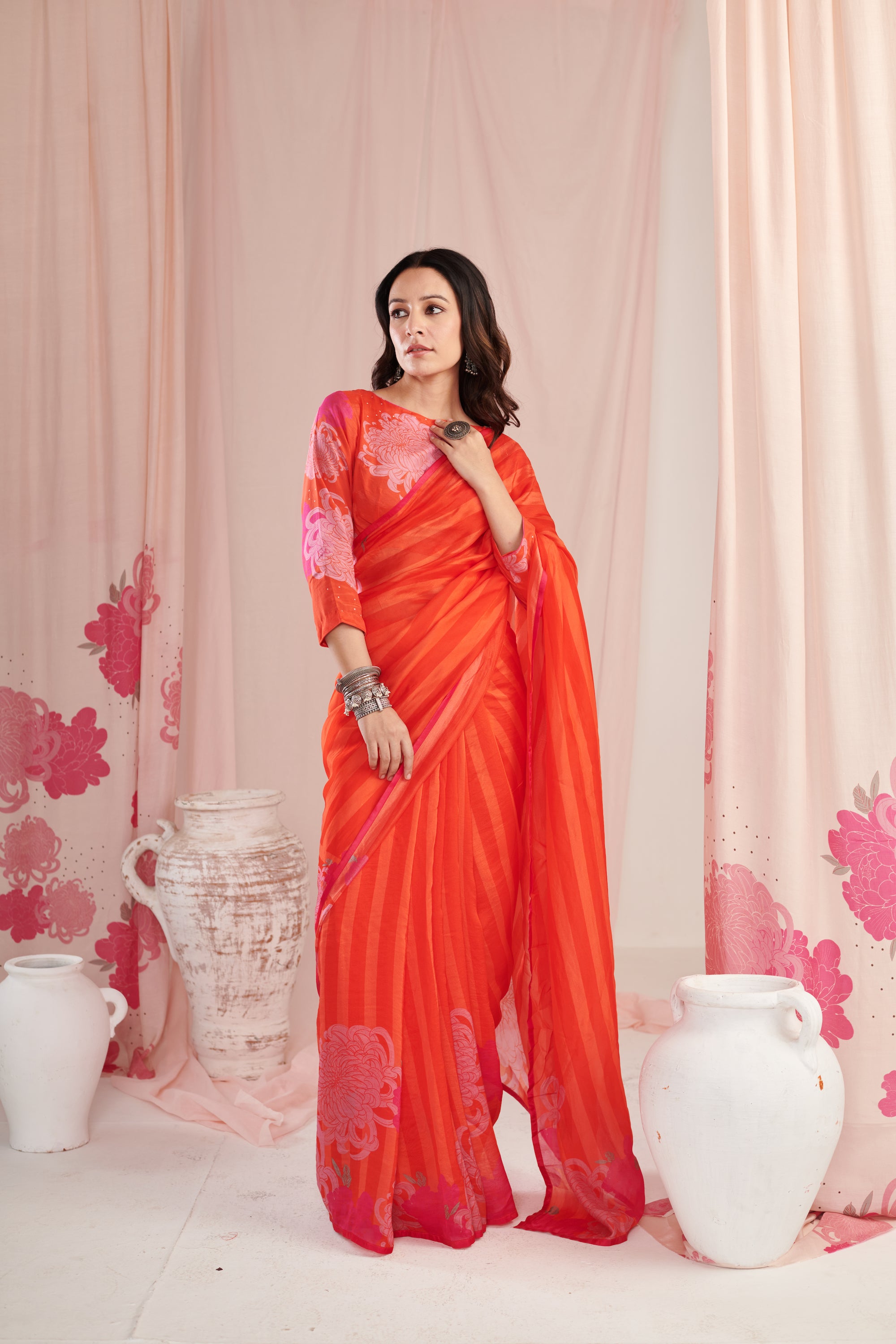 Chrysanthe red saree with blouse pc