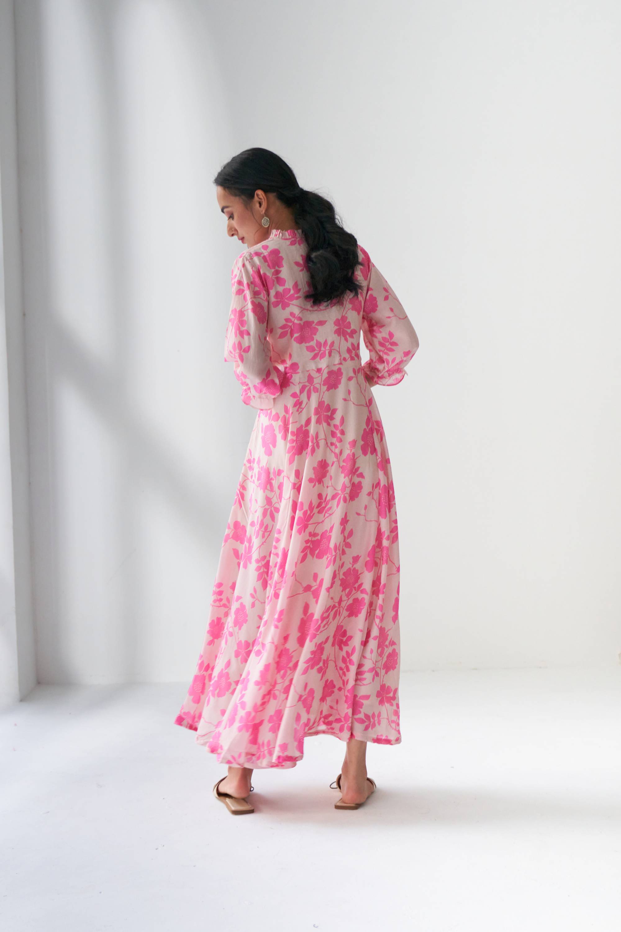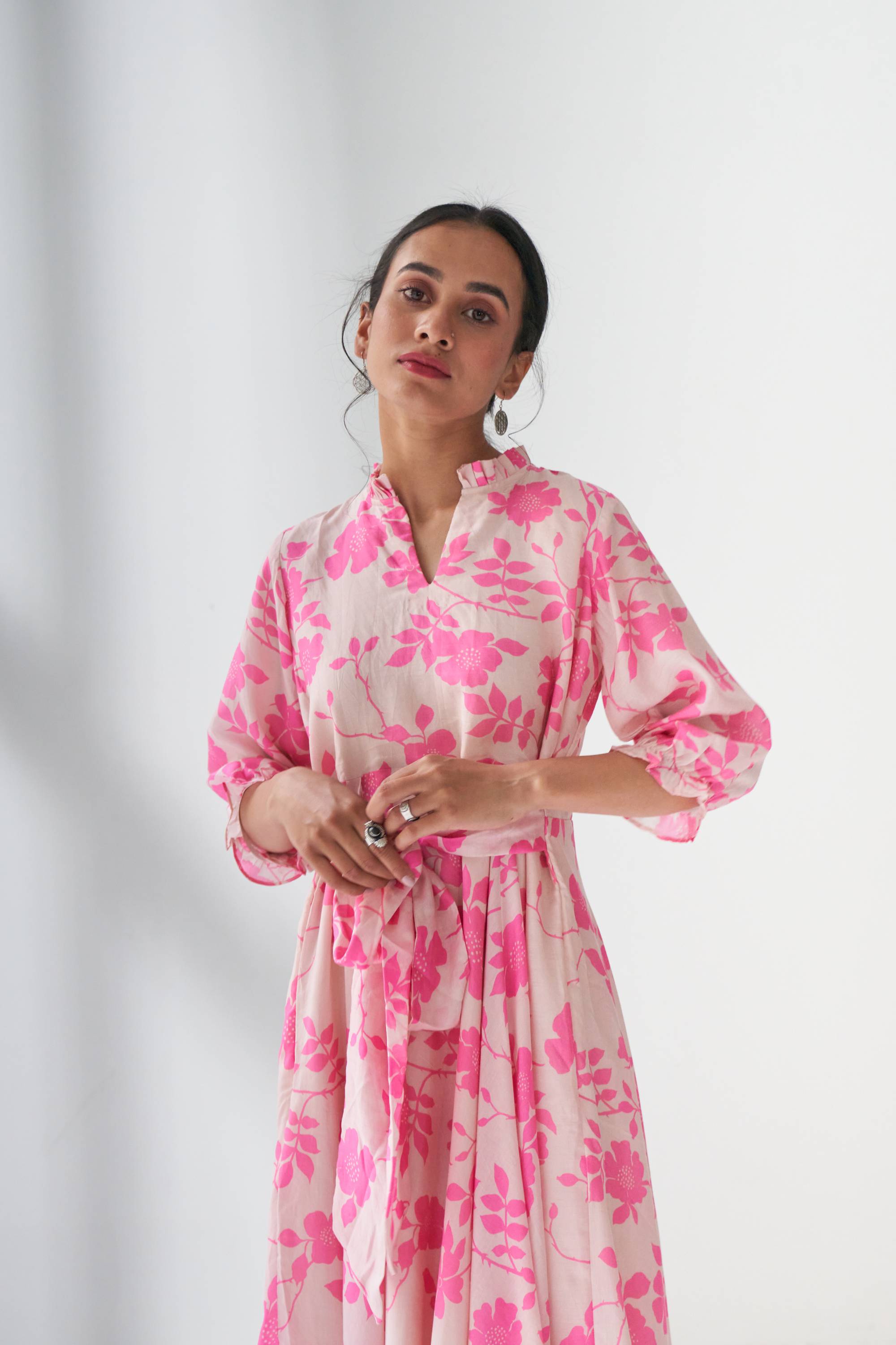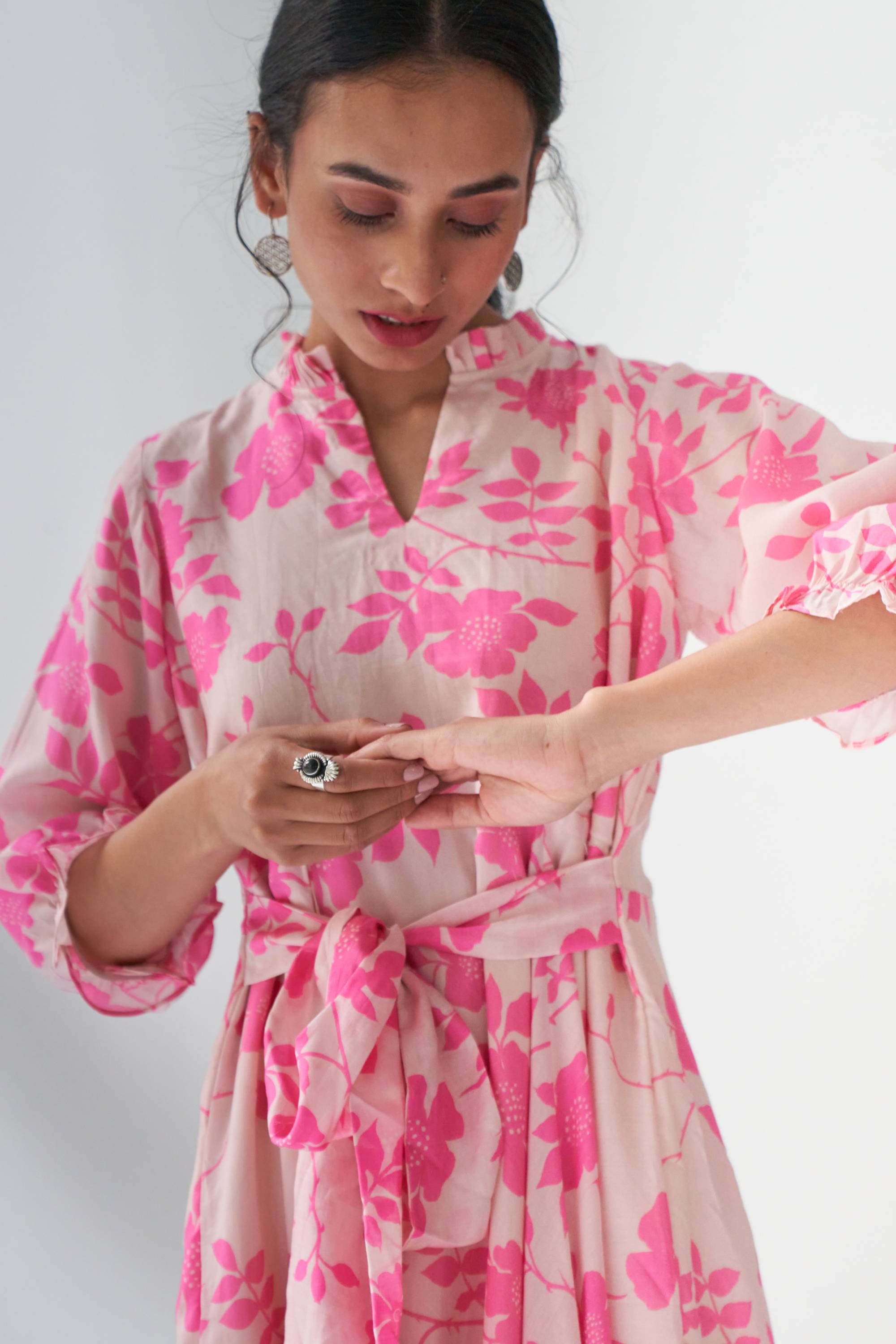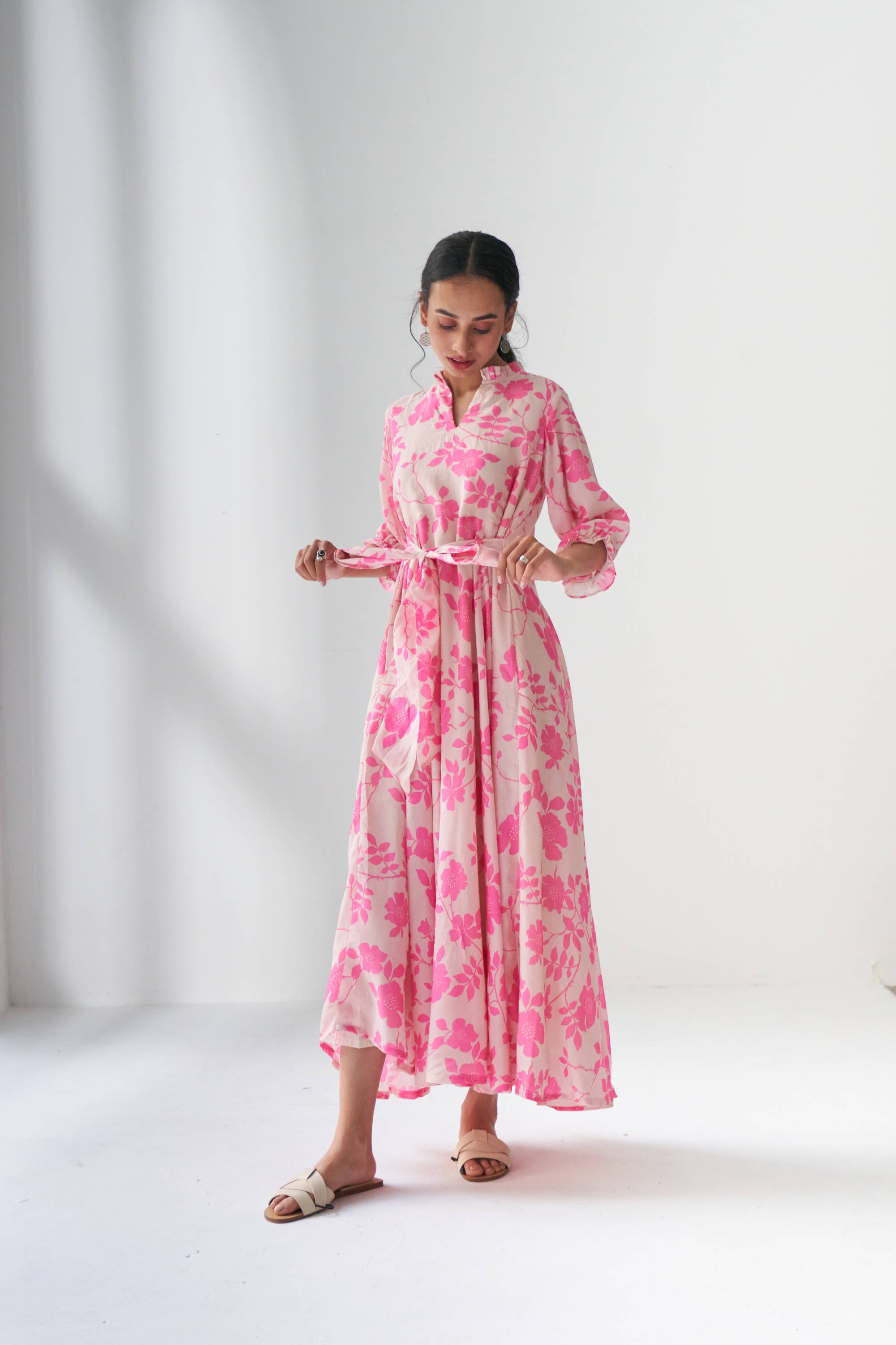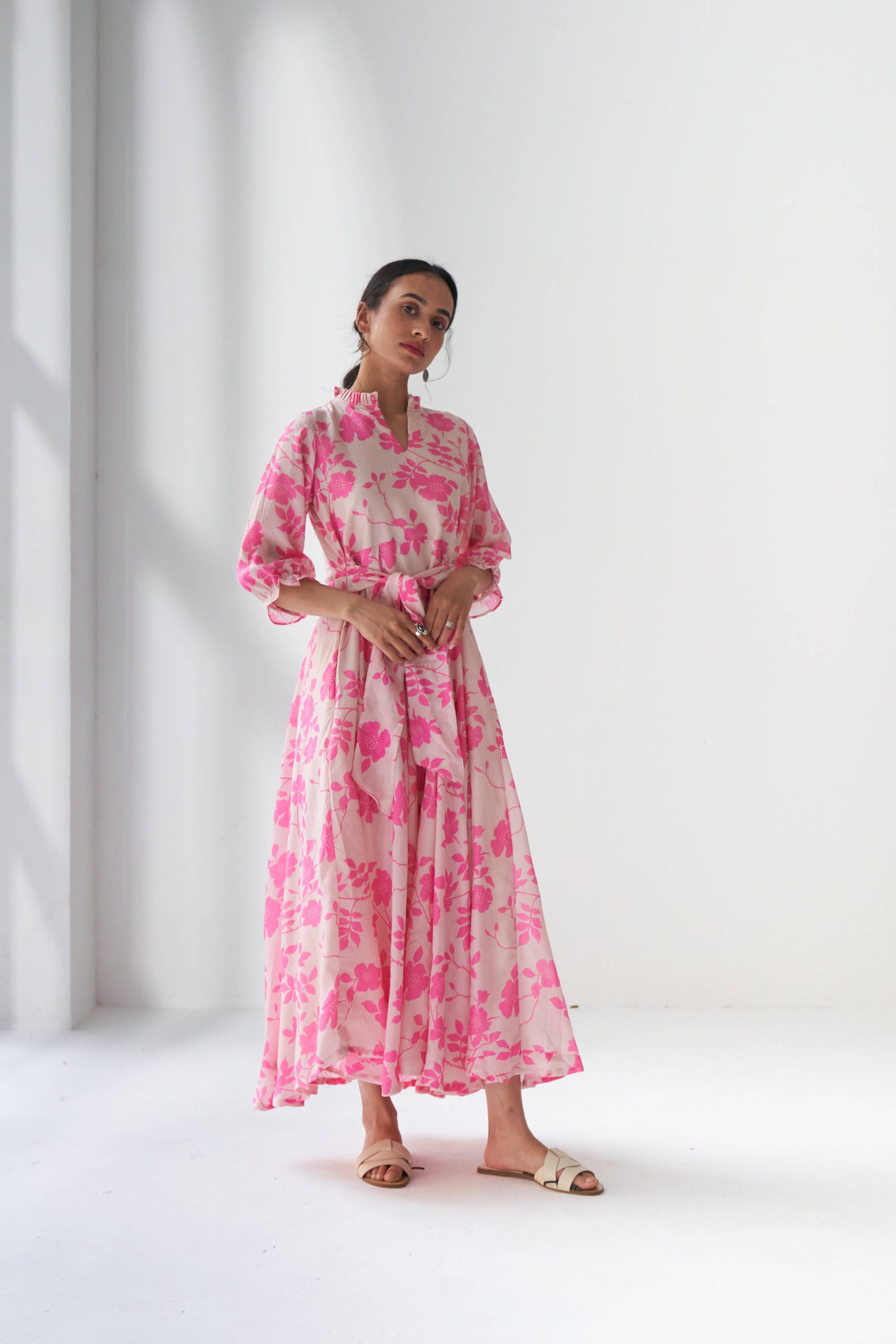 Our Lovestruck flared dress in cotton silk with beautiful bold floral digital print with a attached belt for fitting. This is dress is quintessence for summer time.