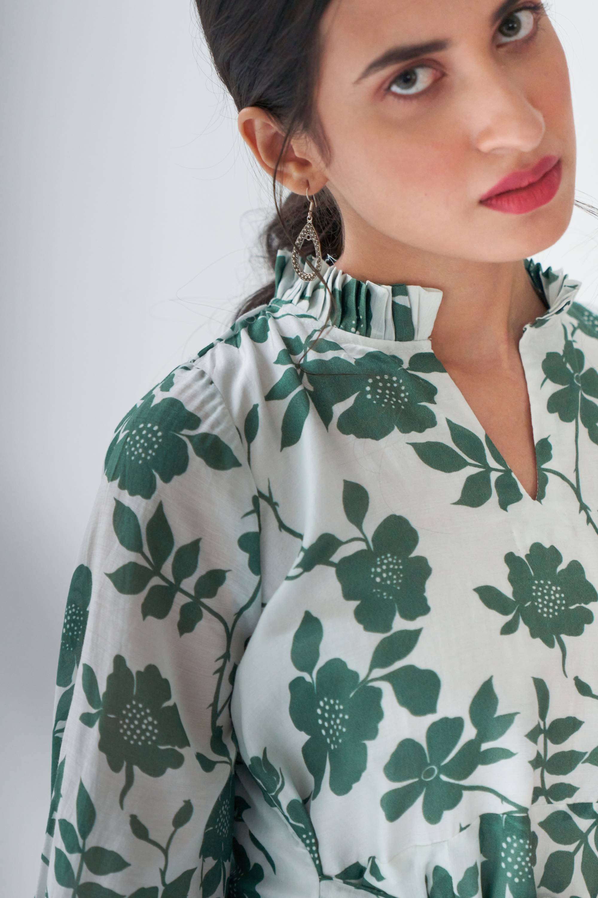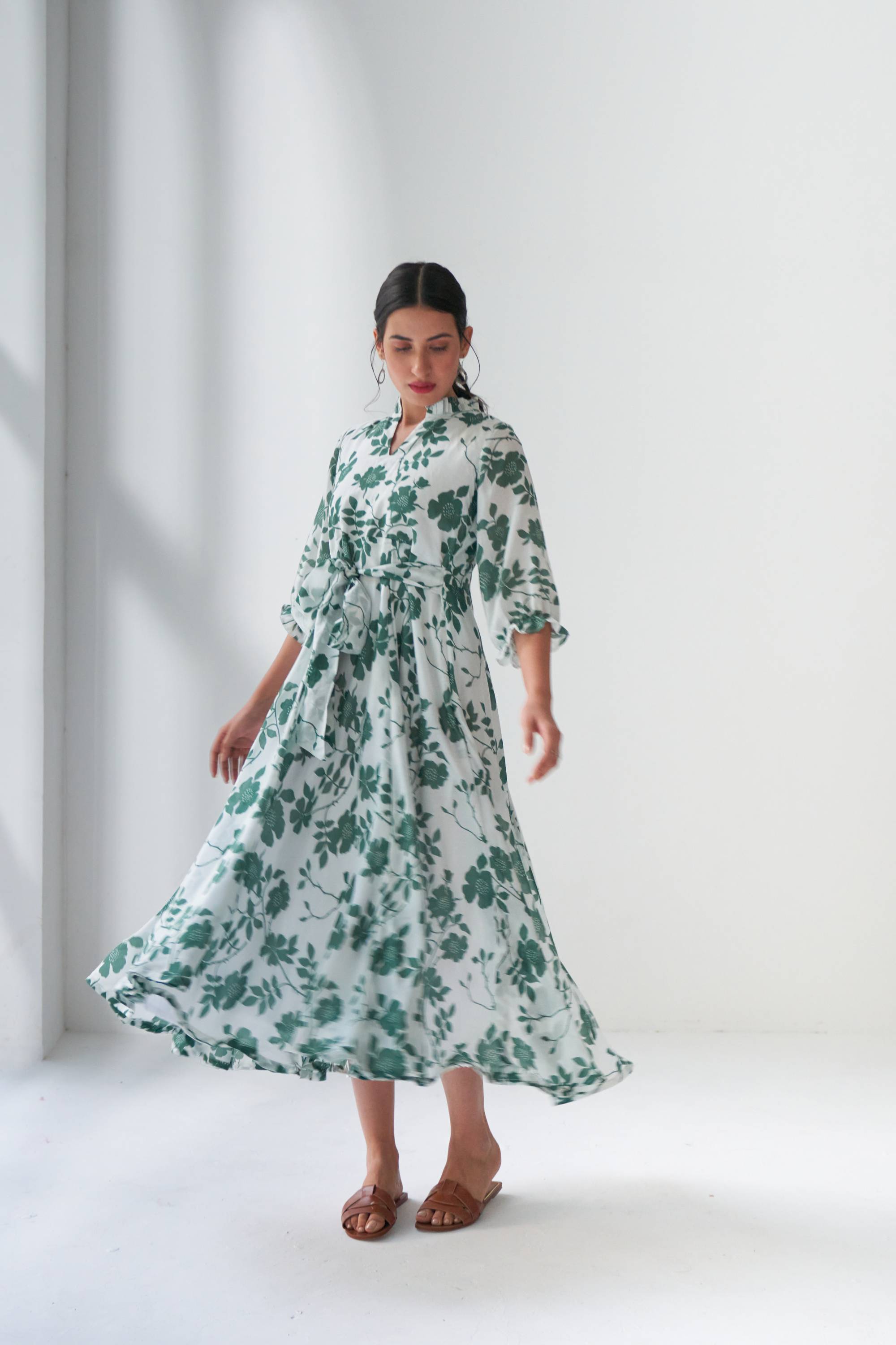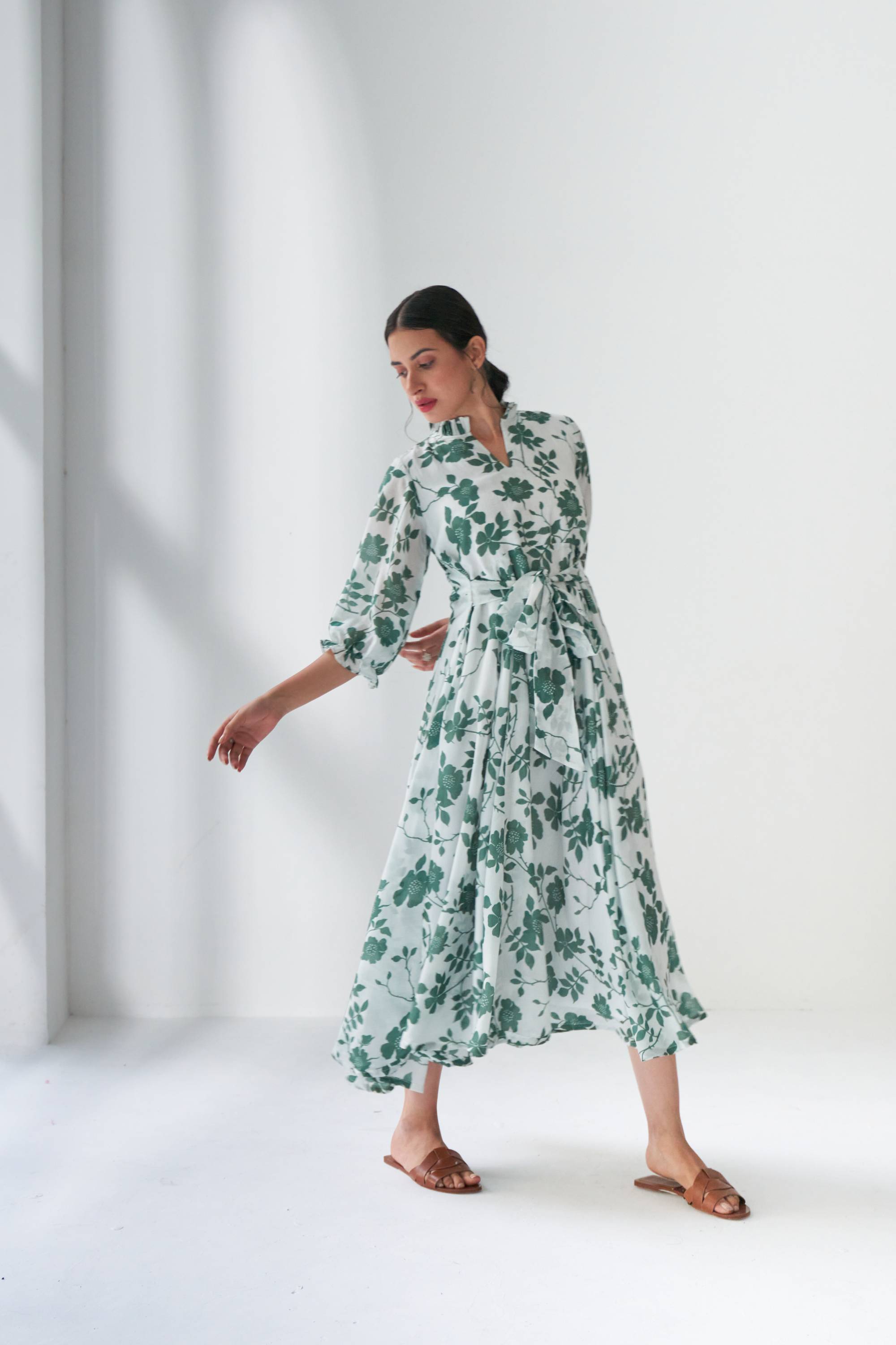 Our Lovestruck flared dress in cotton silk with beautiful bold floral digital print with a attached belt for fitting. This is dress is quintessence for summer time.