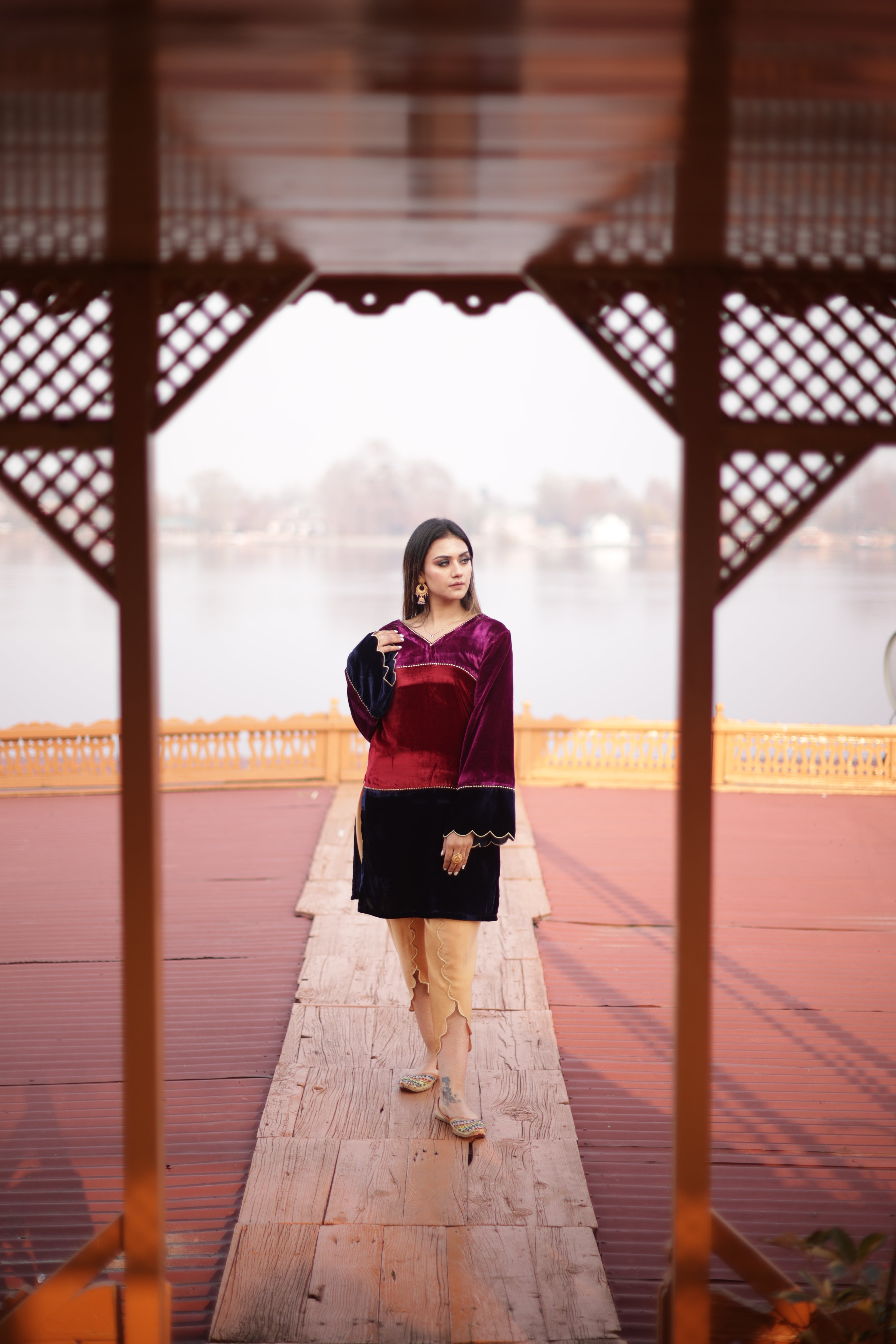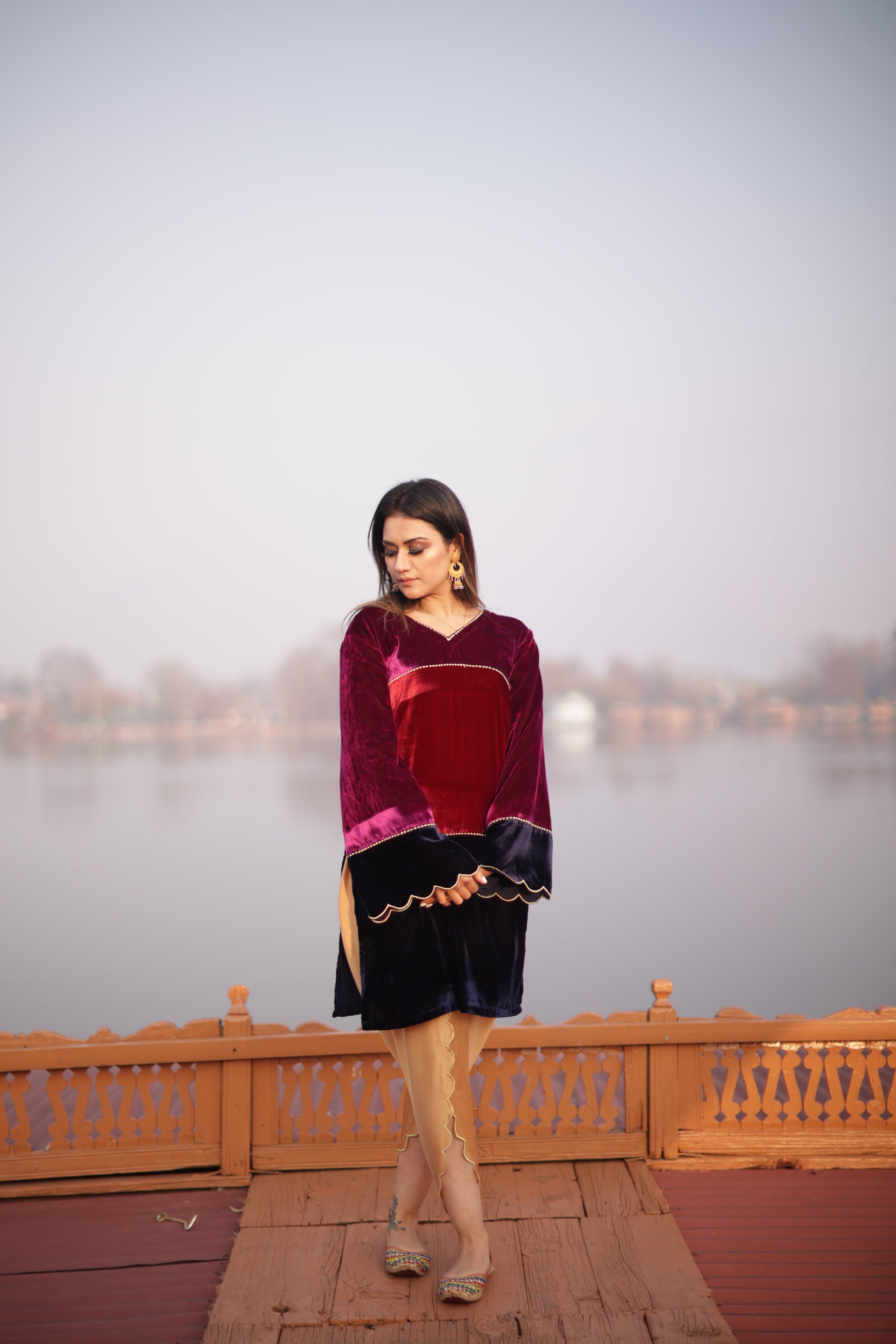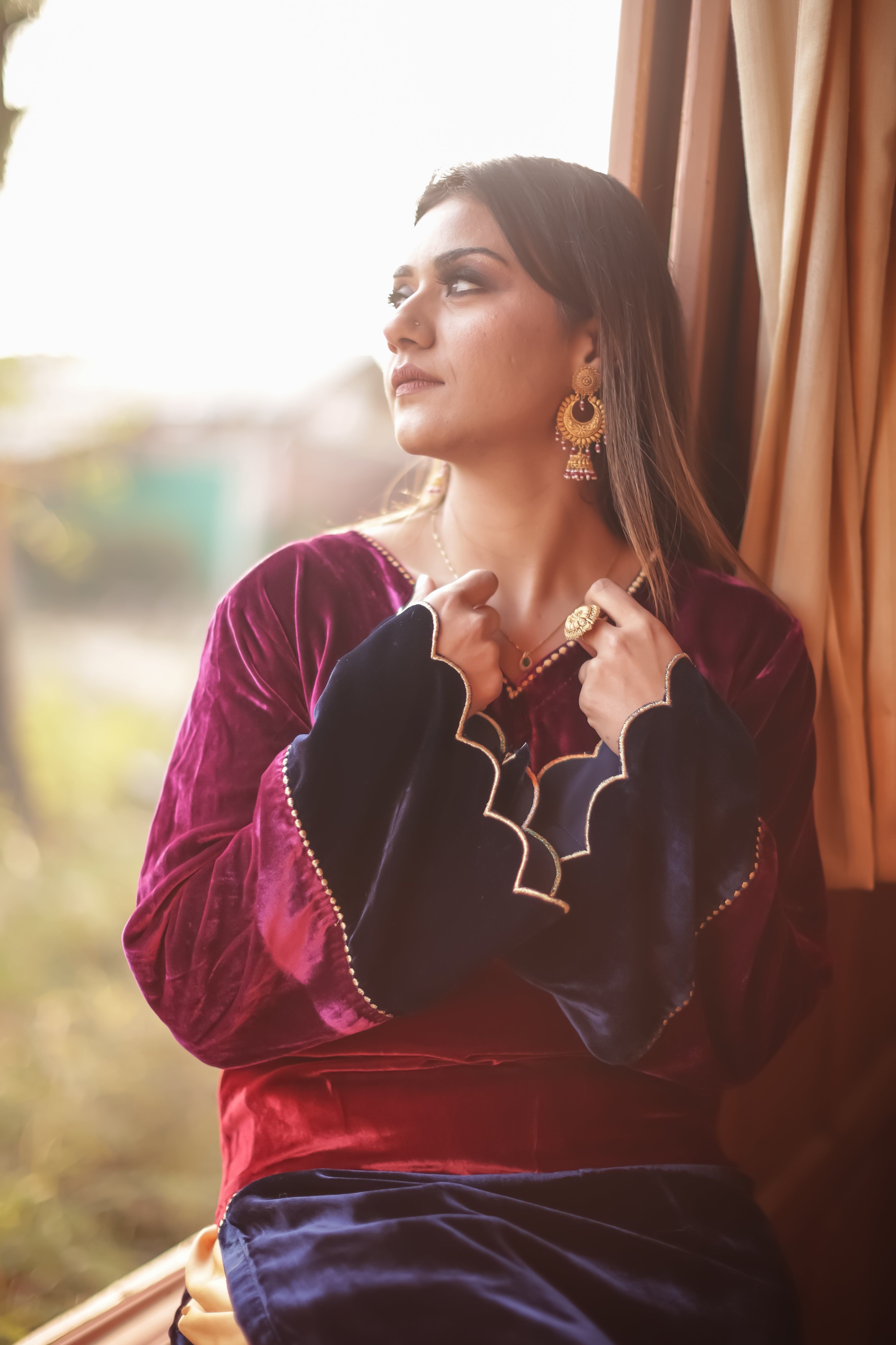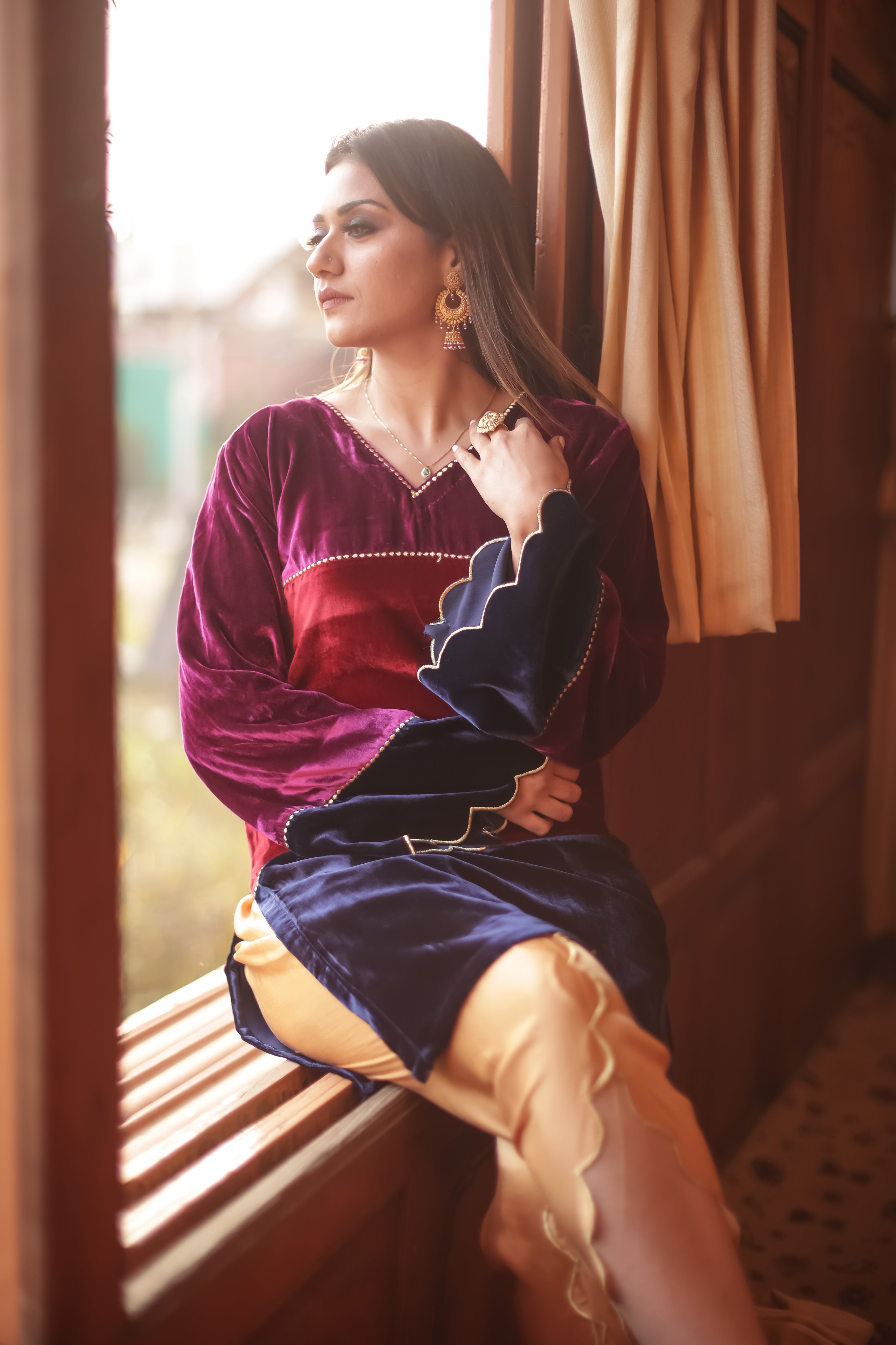 Tri-Colour Velvet Kurta Set