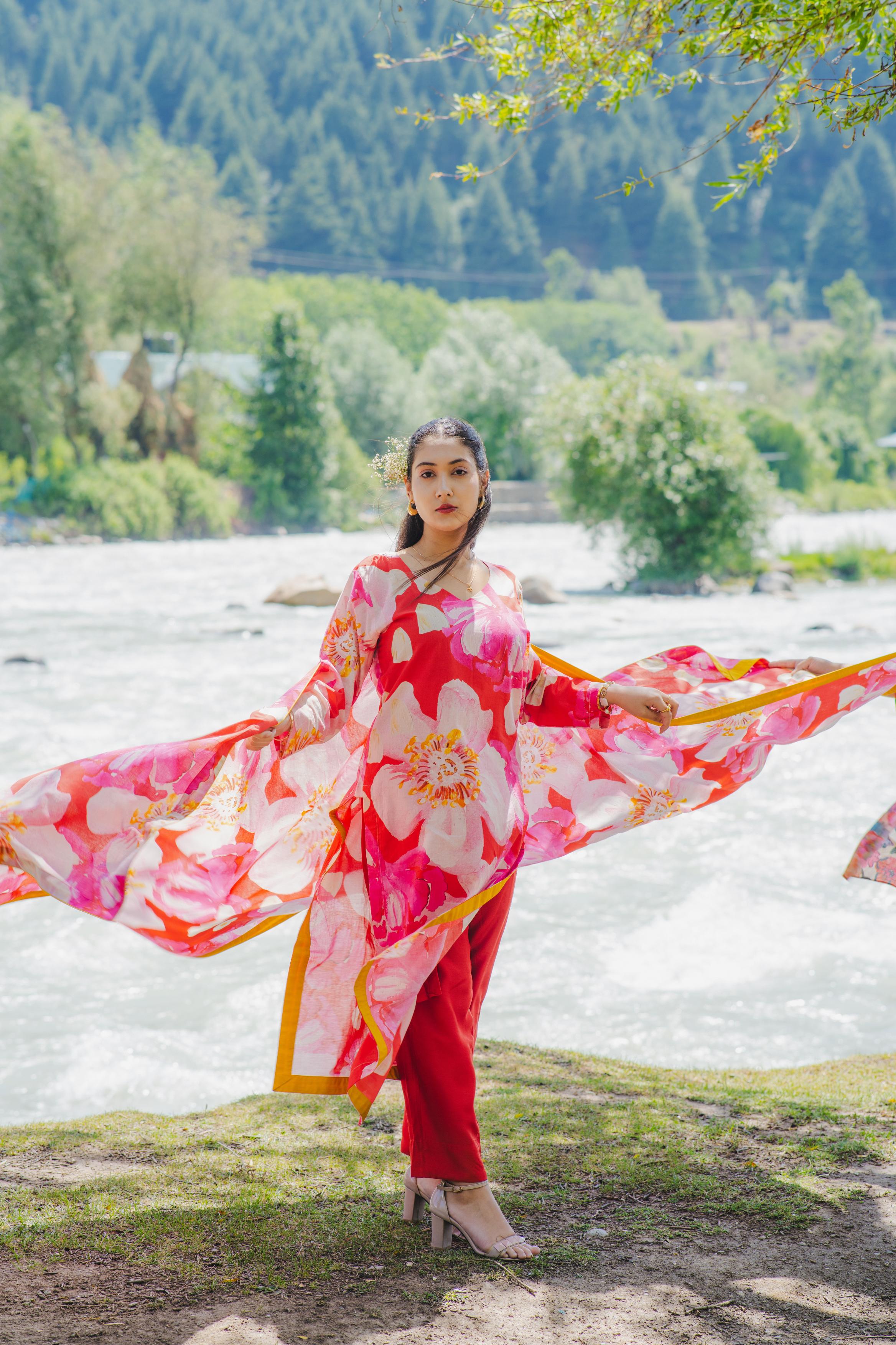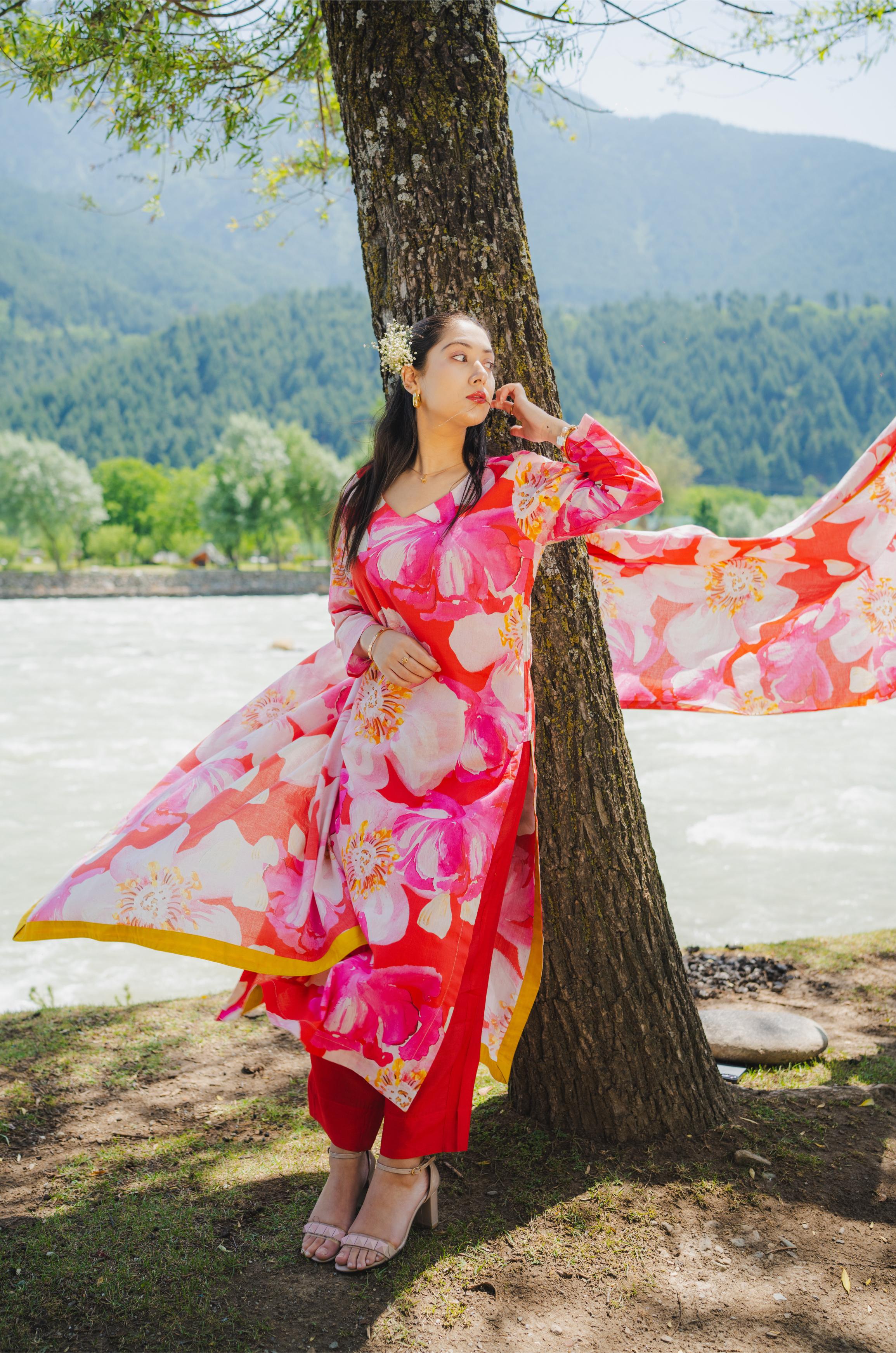 A dress that blooms with every step. The Wild Rose Dress is crafted in soft, breathable cotton with a flowy silhouette and delicate floral prints In shades of black ,romantic red and blush. Feminine and effortless, and made for sun-kissed days and breezy evenings.Designed with a structured sweetheart hand embroidered neckline, A-line skirt.