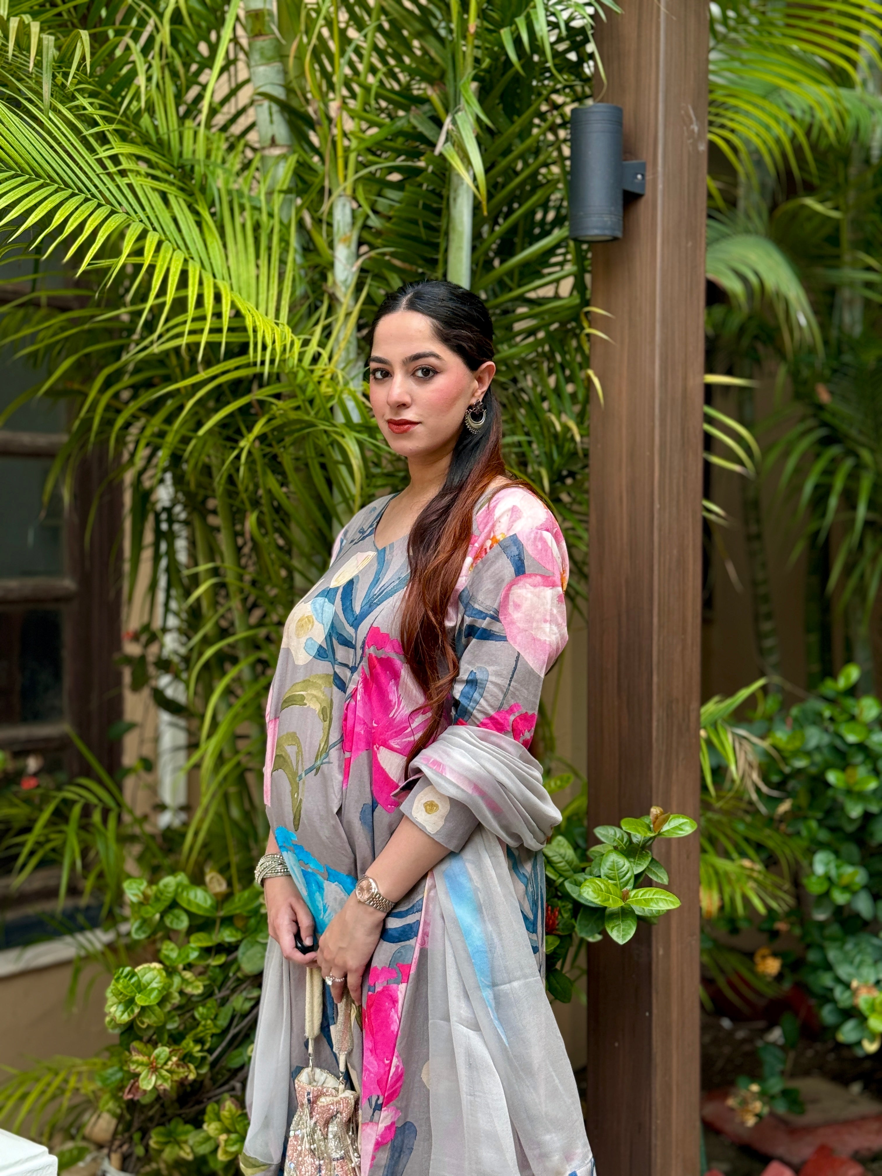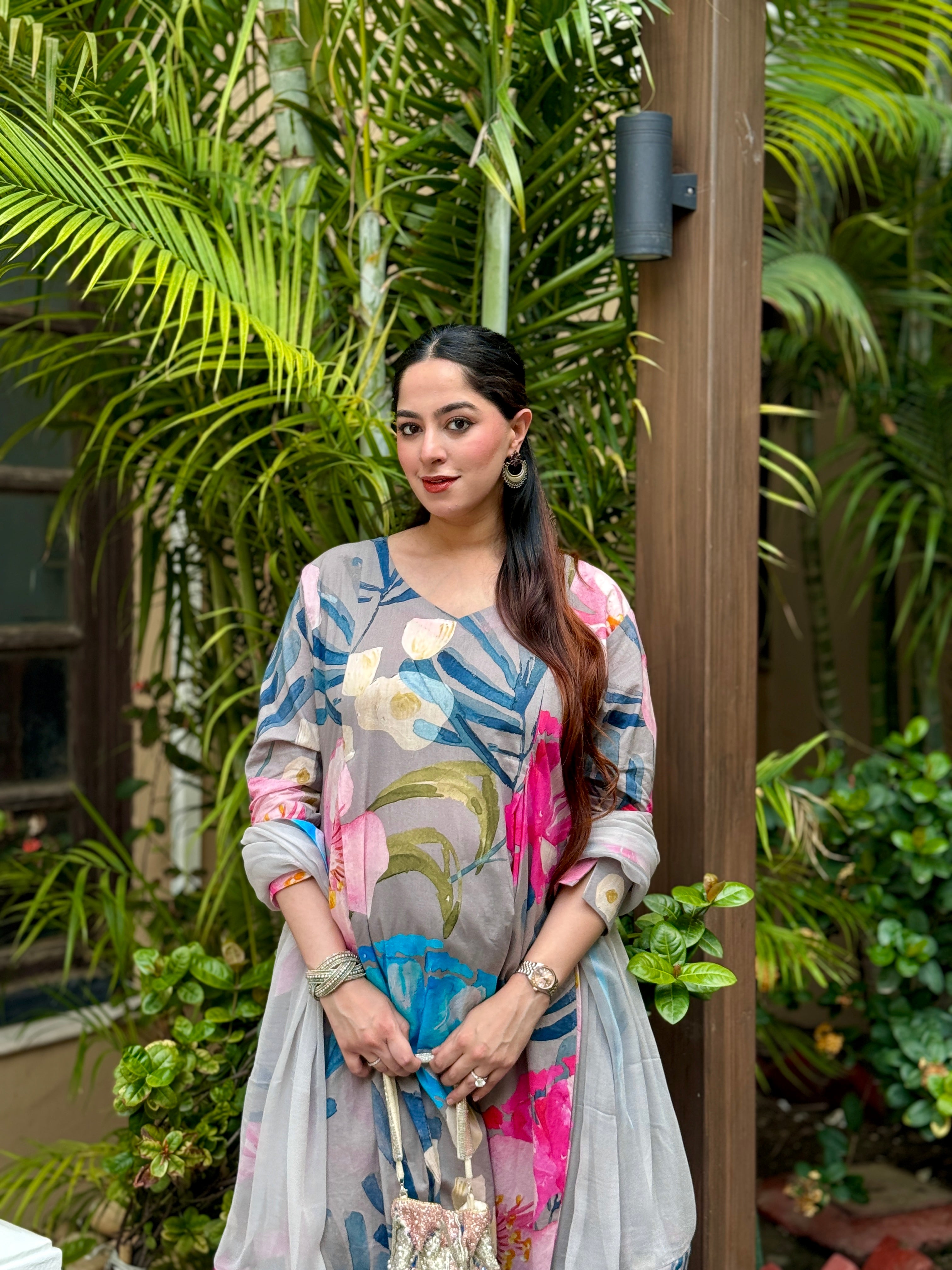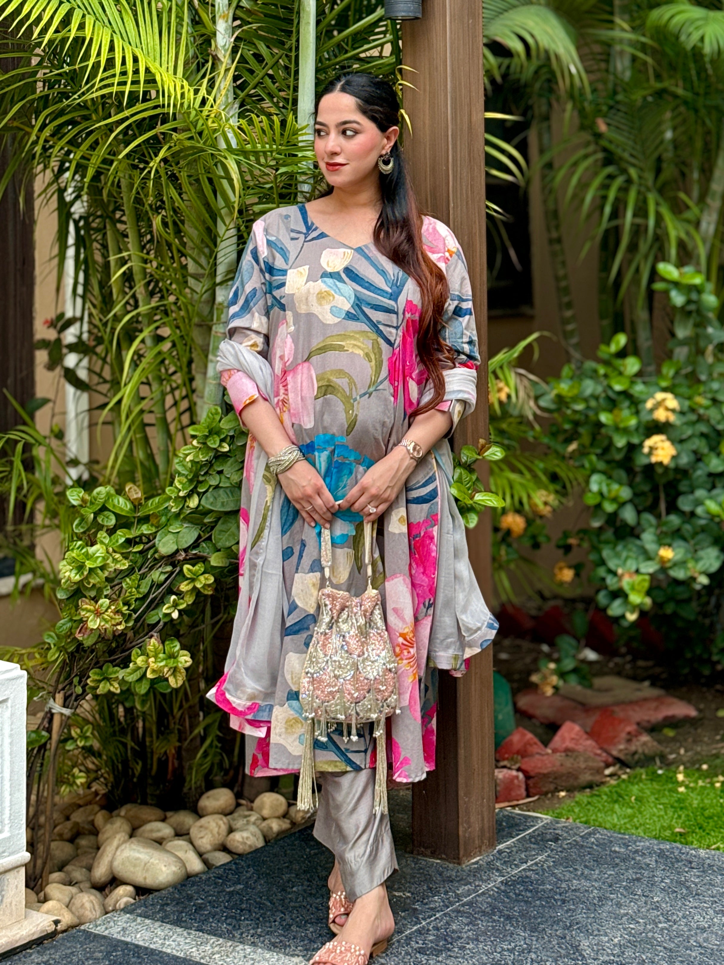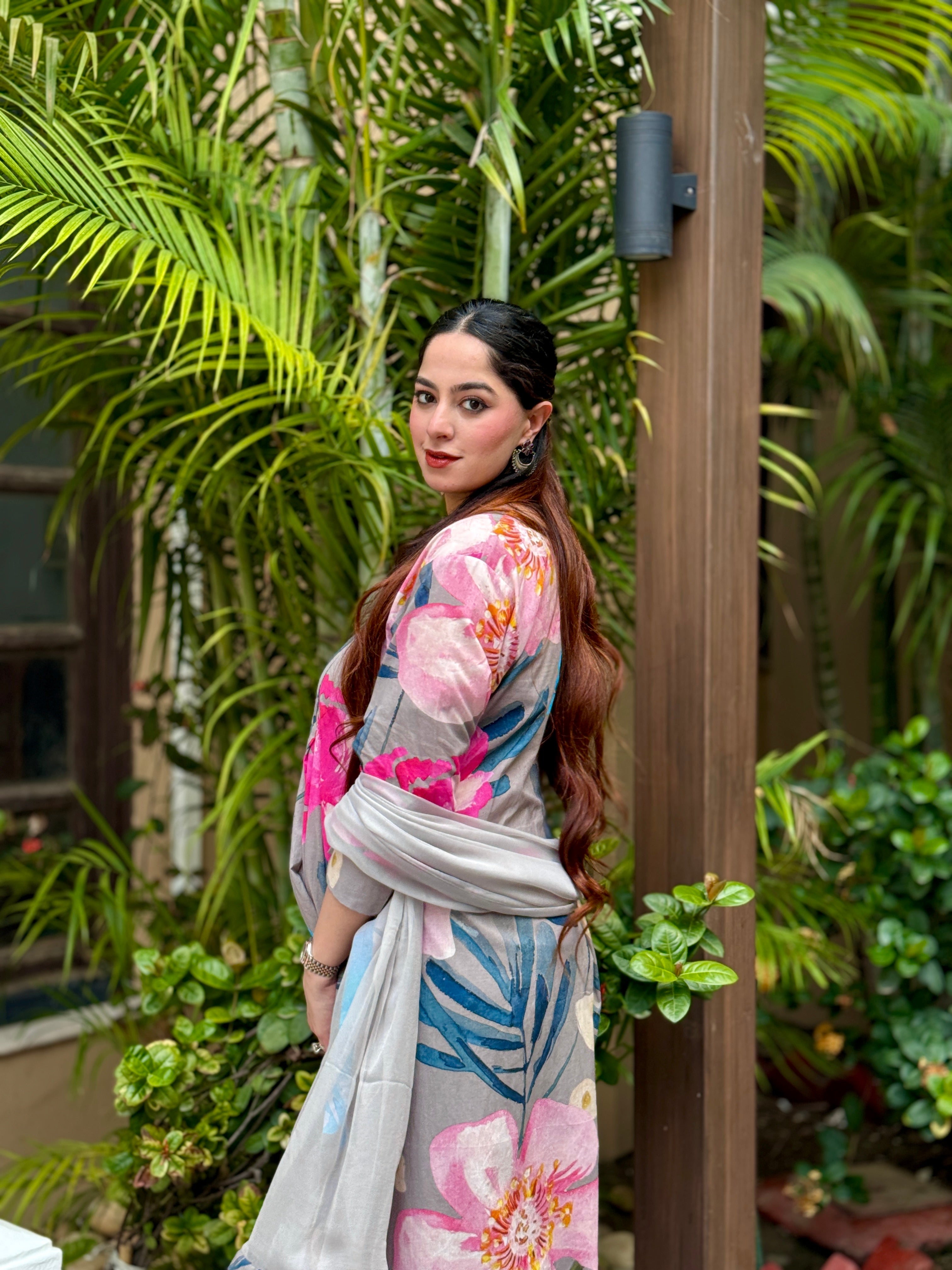 Grey Bloom Panelled Kurta Set