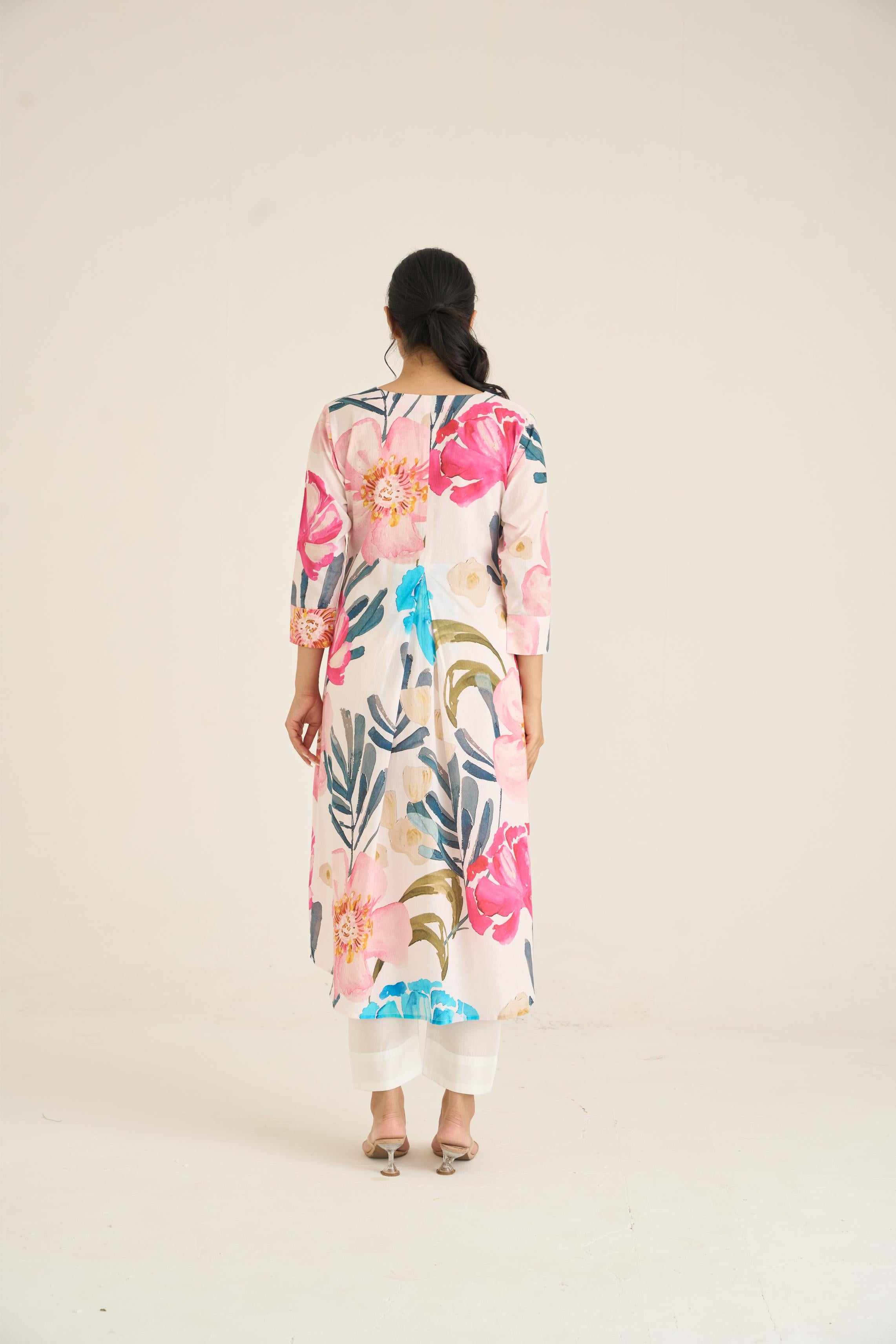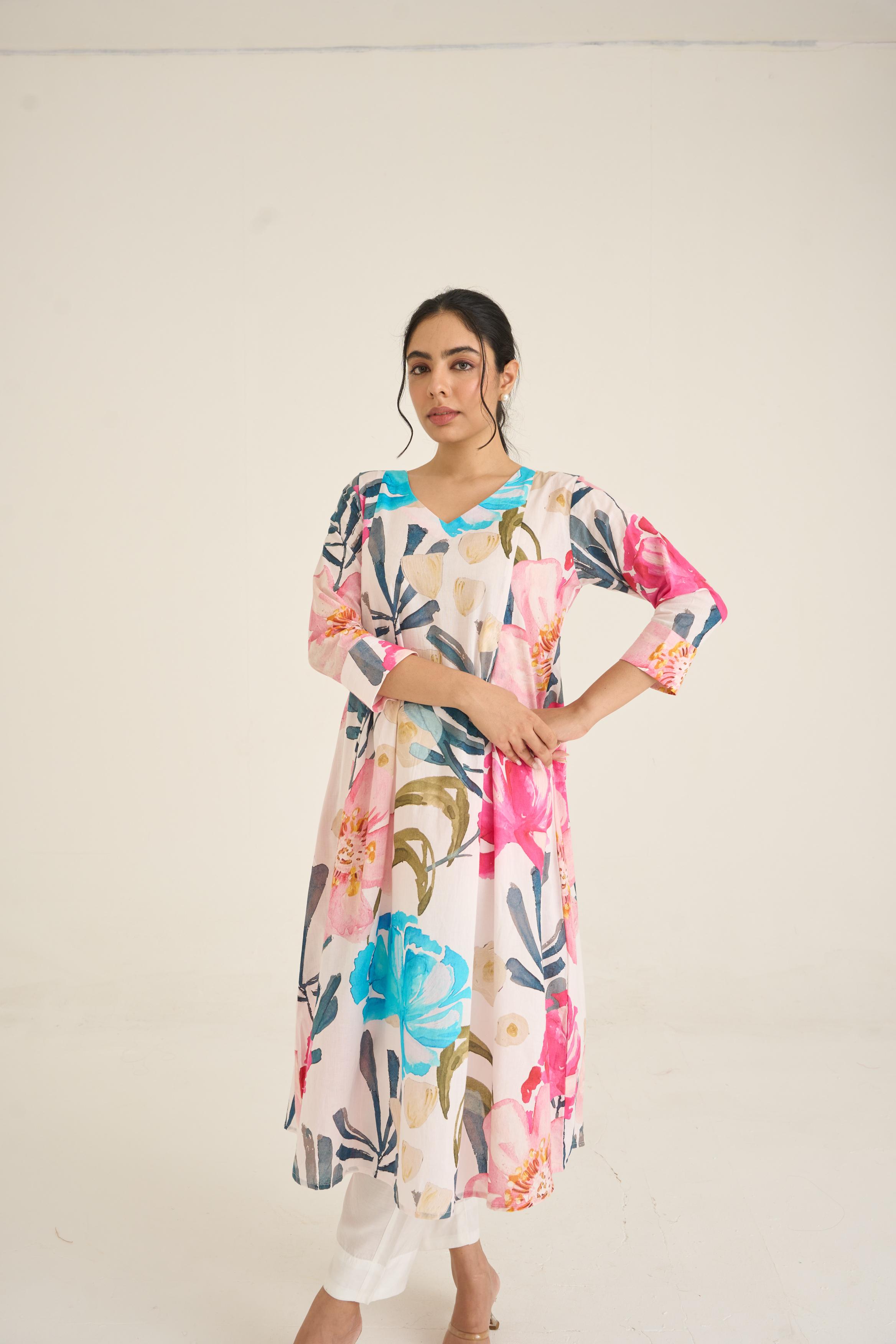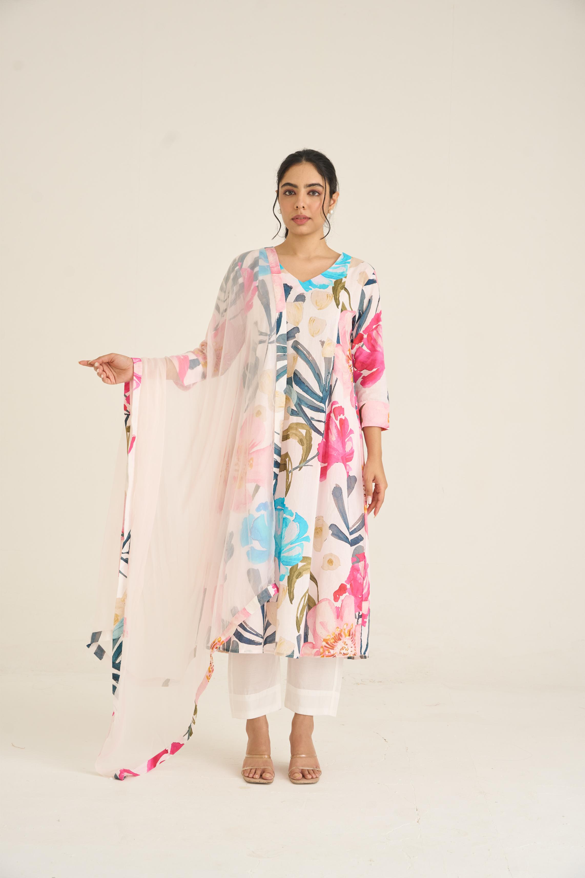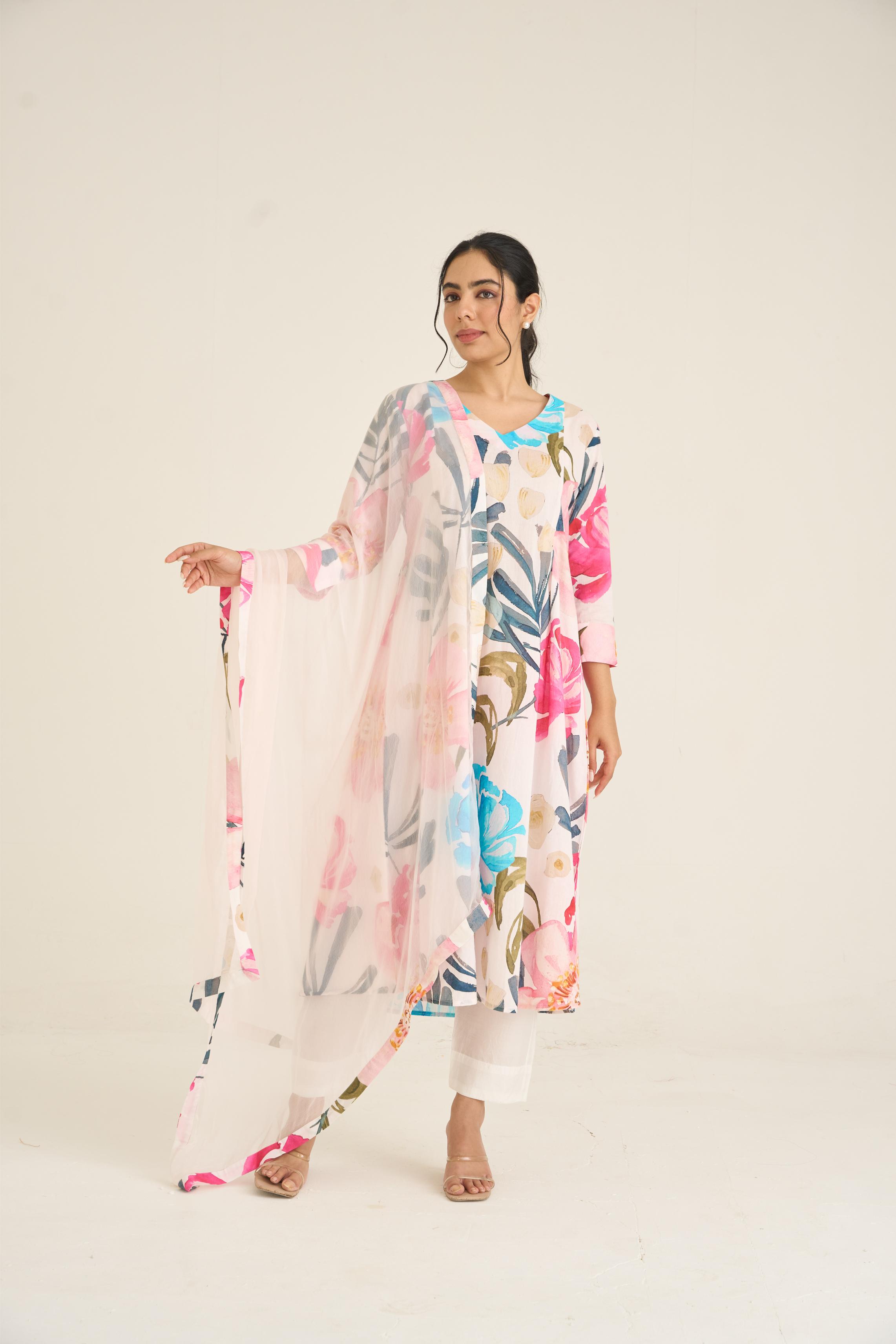 Ivory Bloom Panelled Kurta Set