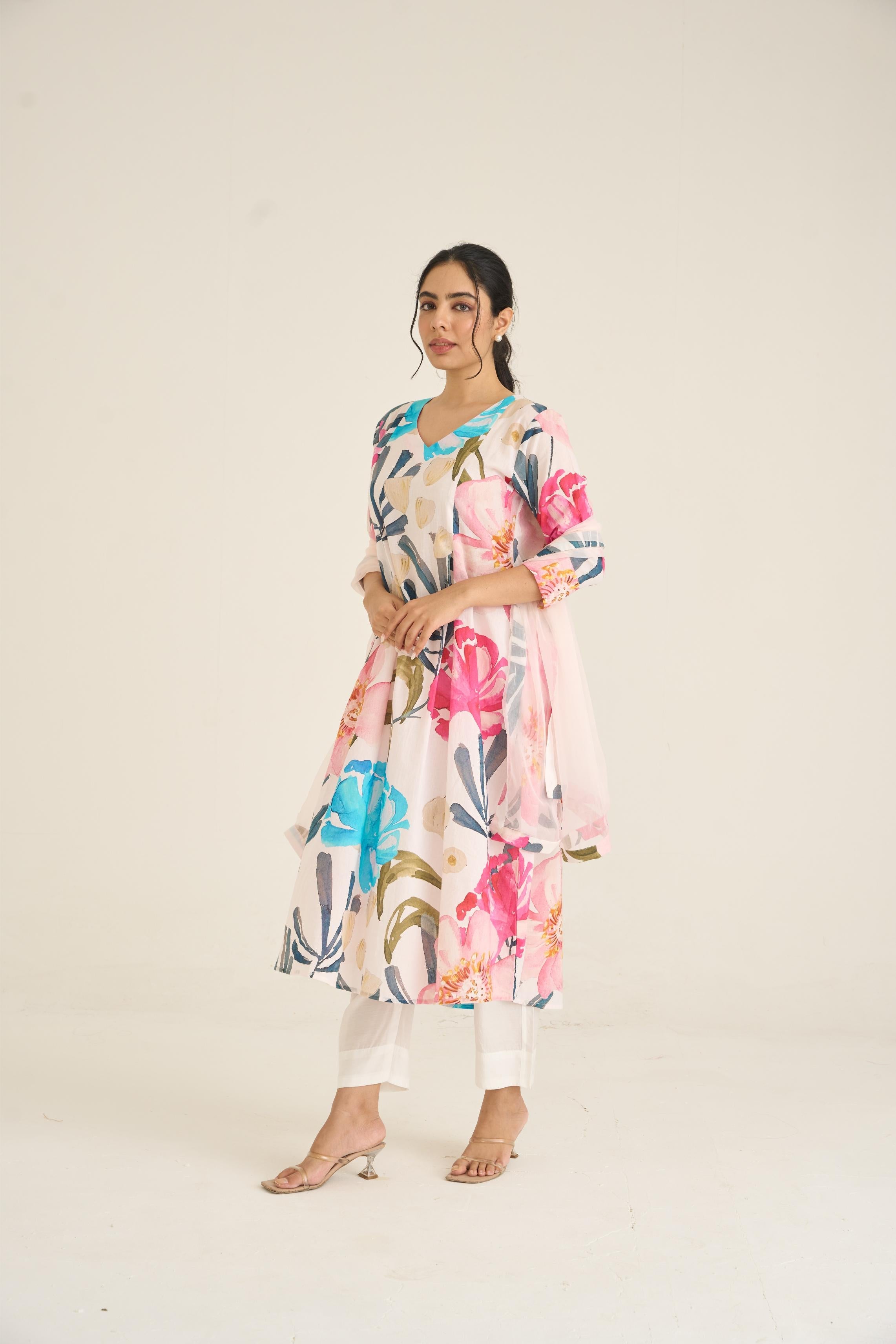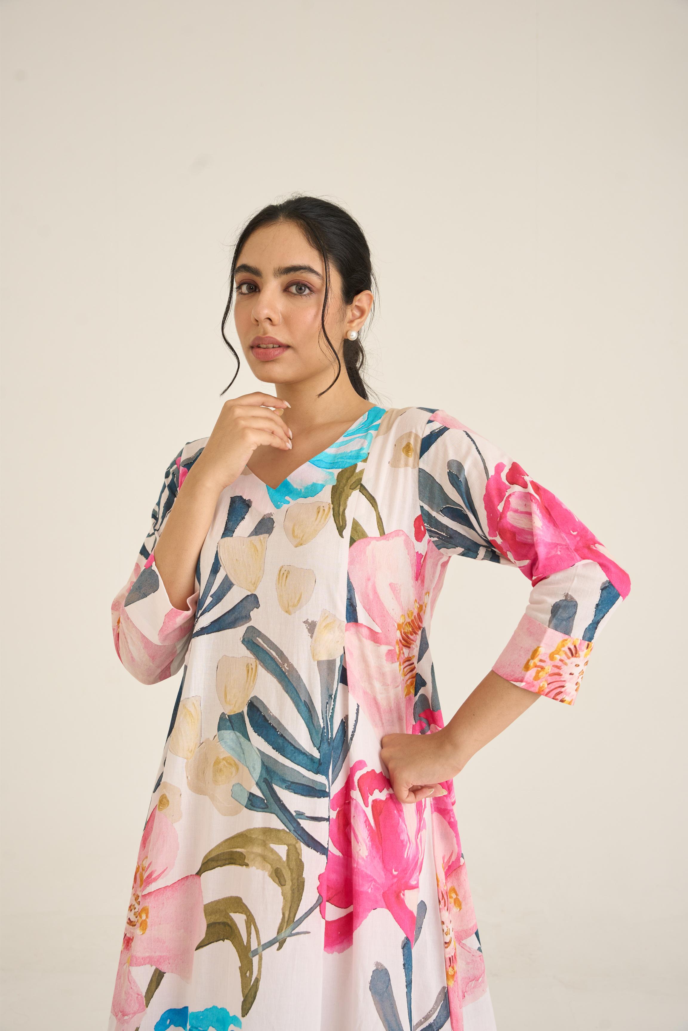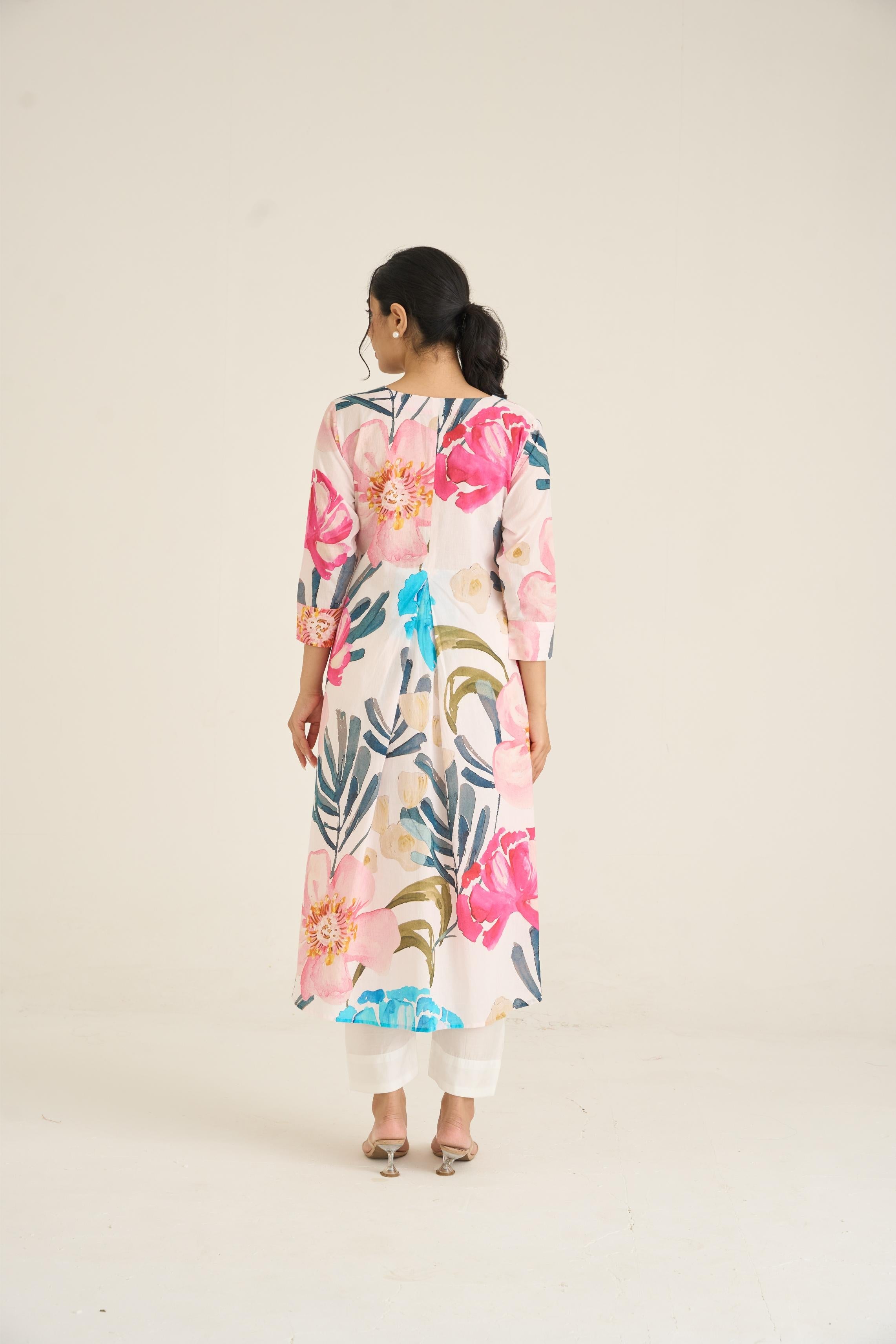 Ivory Bloom Panelled Kurta Set