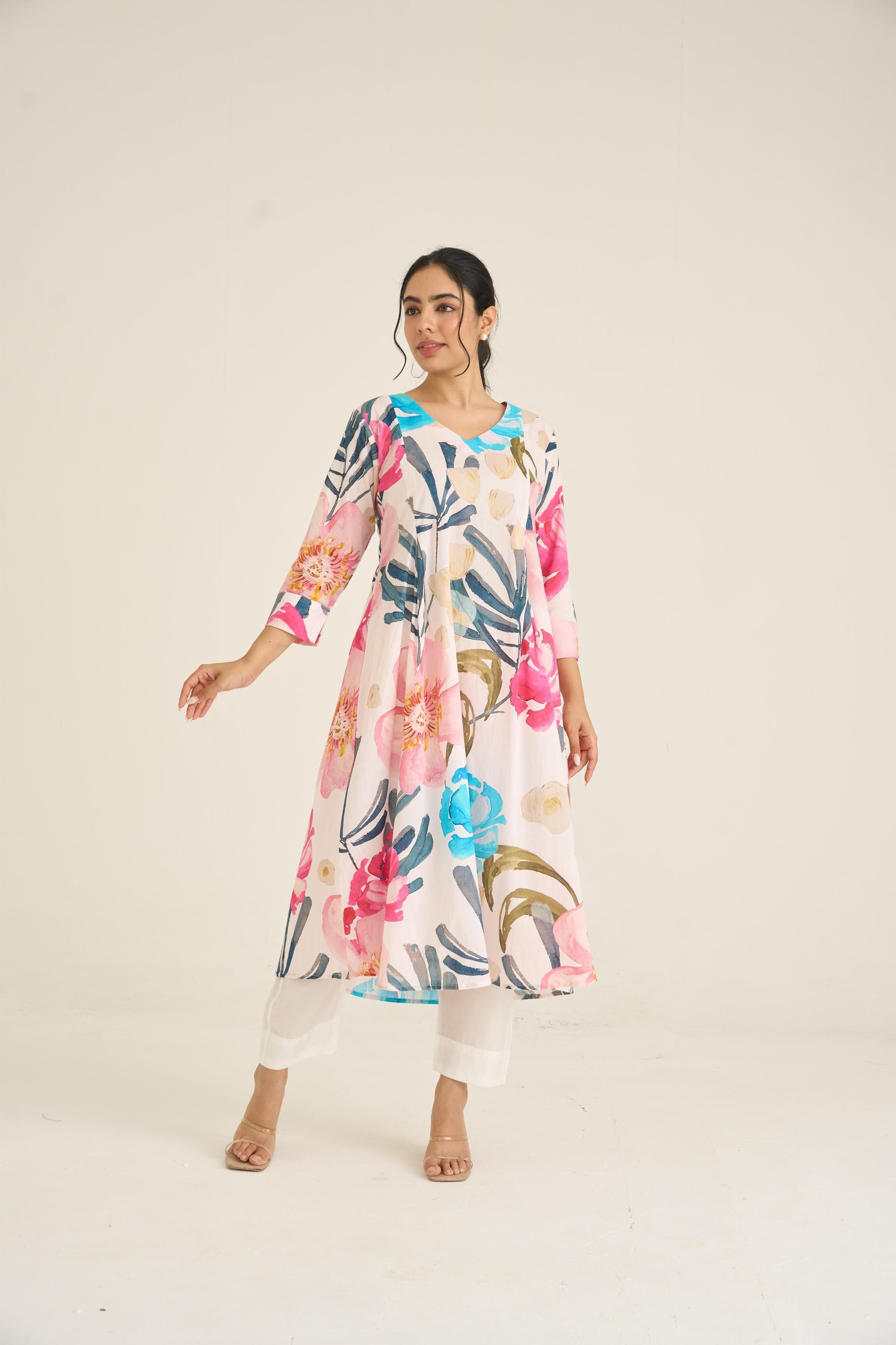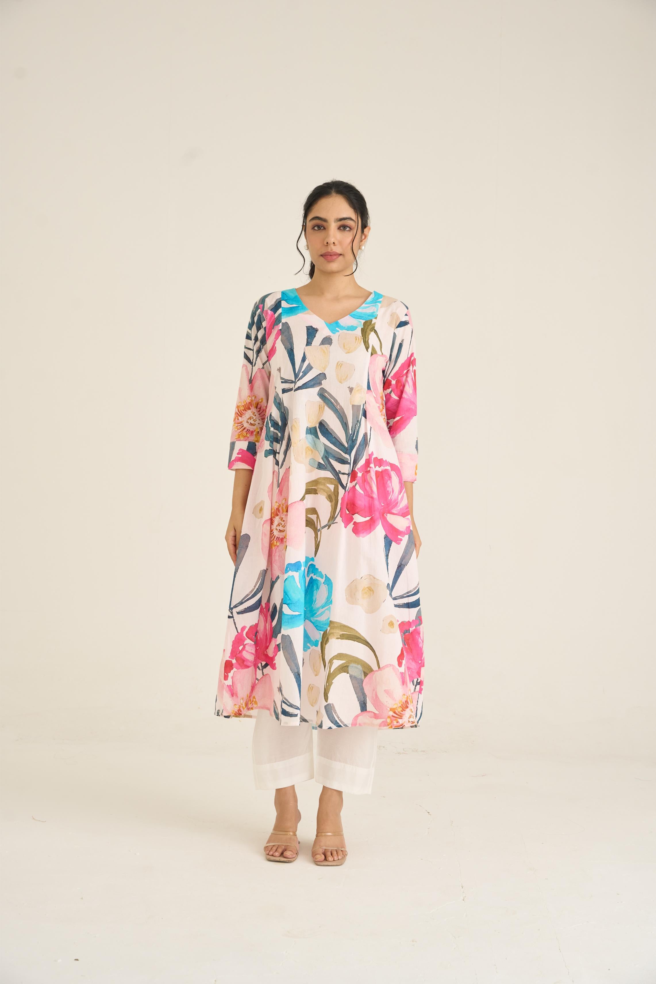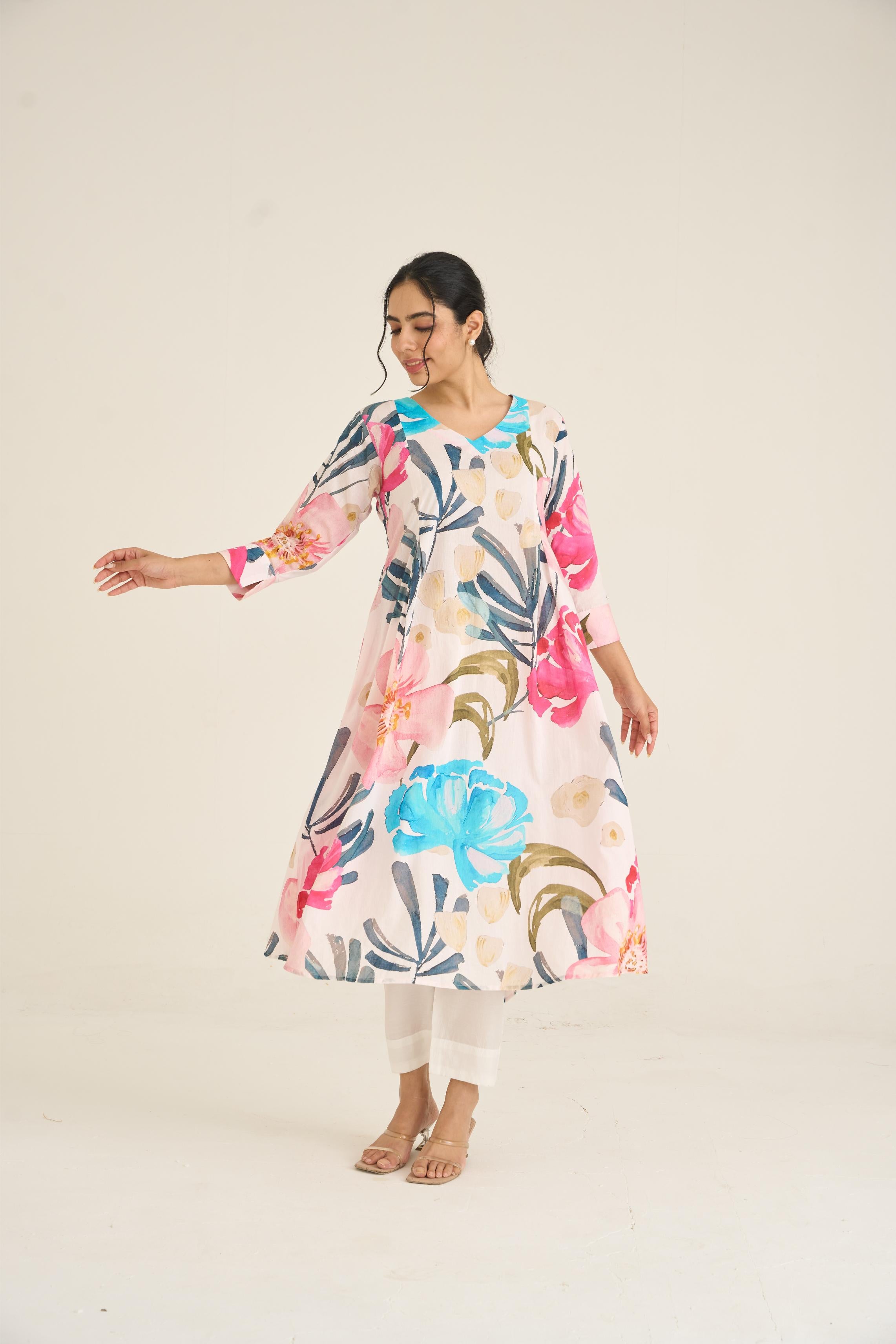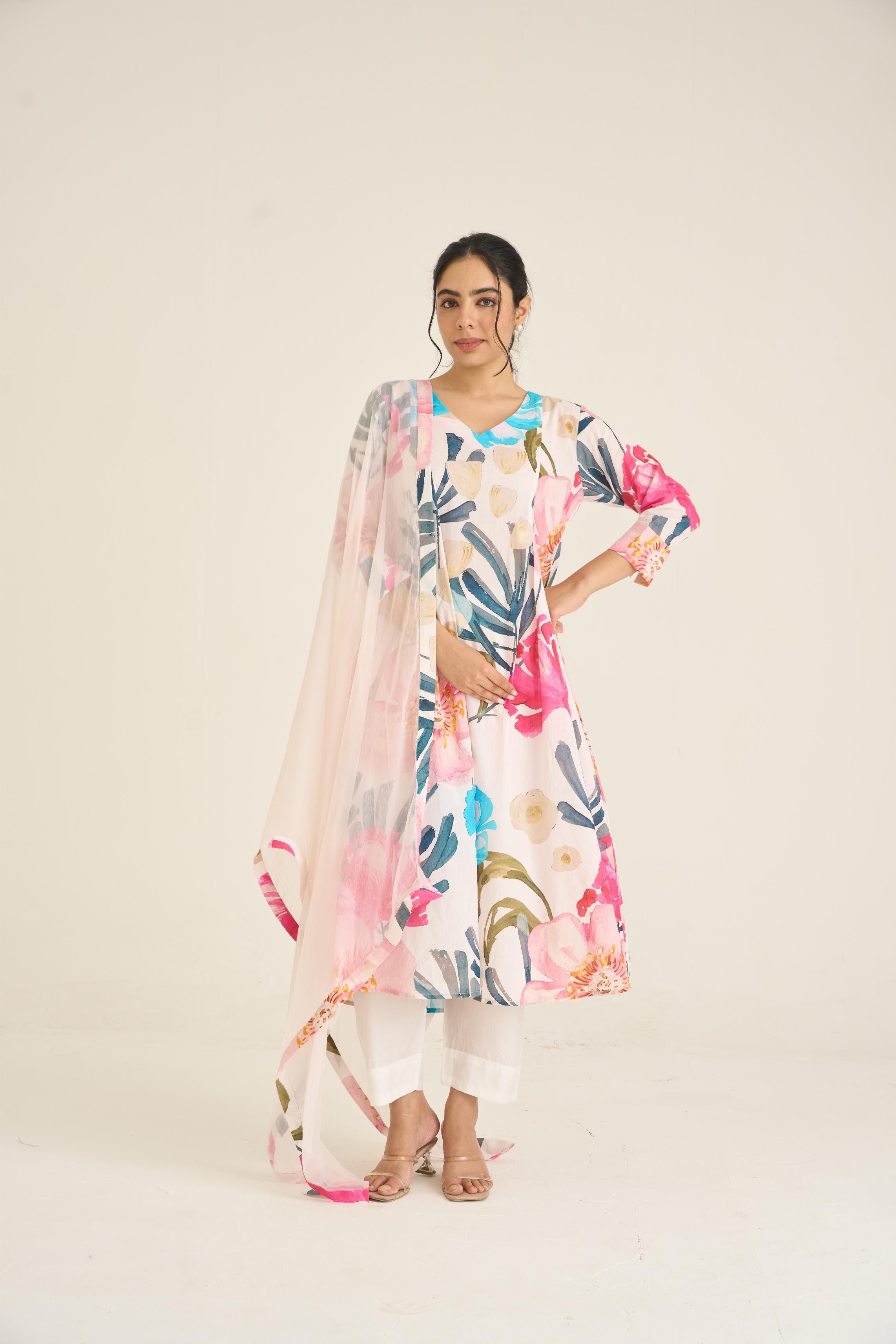 Ivory Bloom Panelled Kurta Set